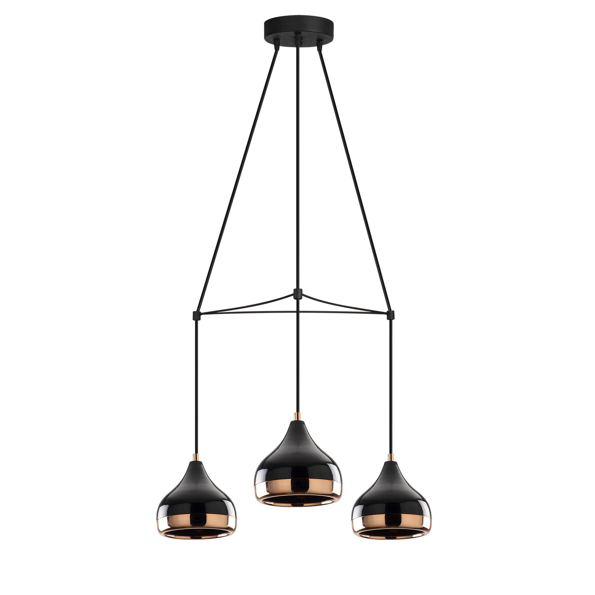 Candeeiro de Teto moderno, preto e cobre, 54 cm de diâmetro, 174 cm de altura | Ajustável, 3 x E27 máx. 40 W | Iluminação elegante para decoração glamourosa e escandinava