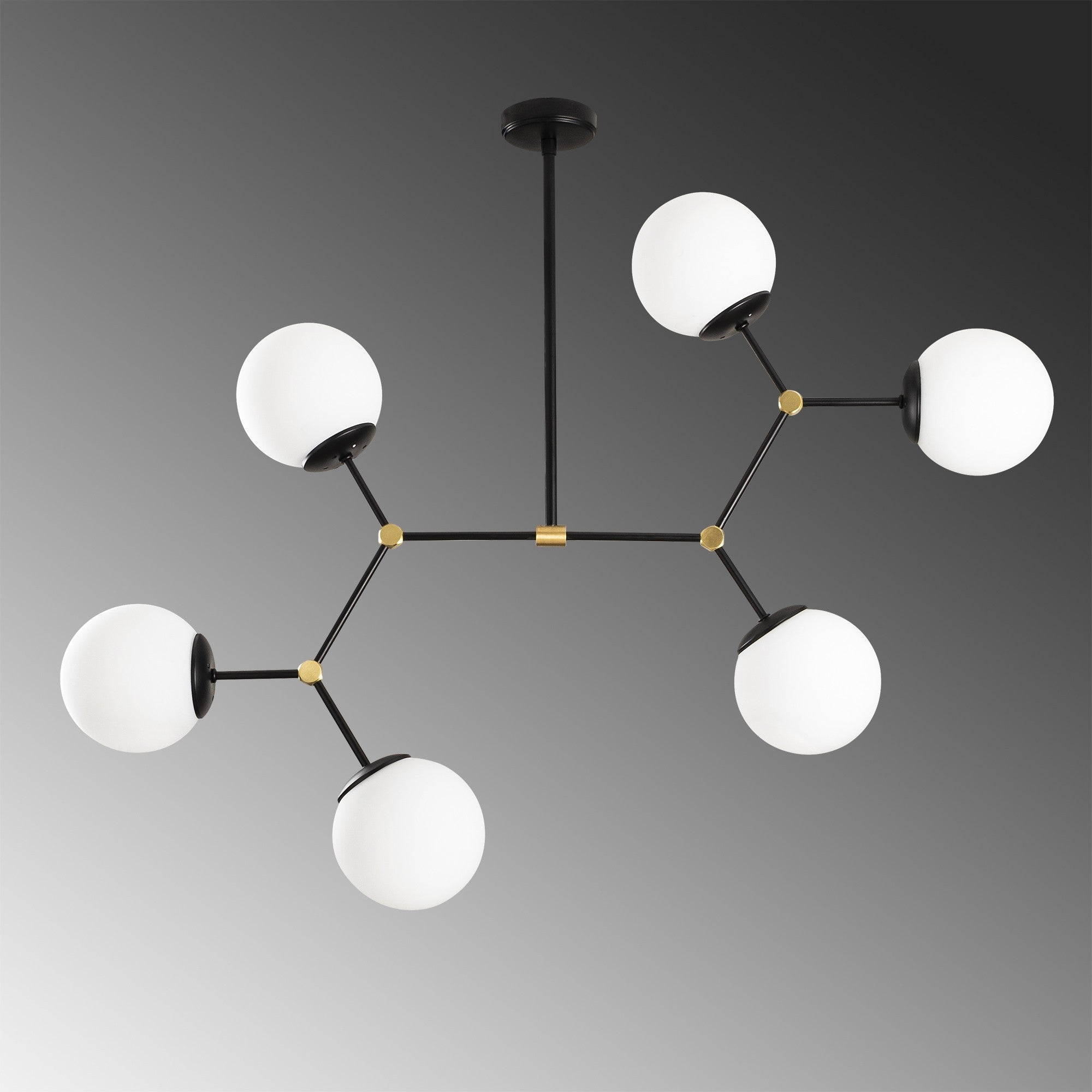 Candeeiro de Teto – 100 x 58 cm – Preto e Branco – Metal e Vidro