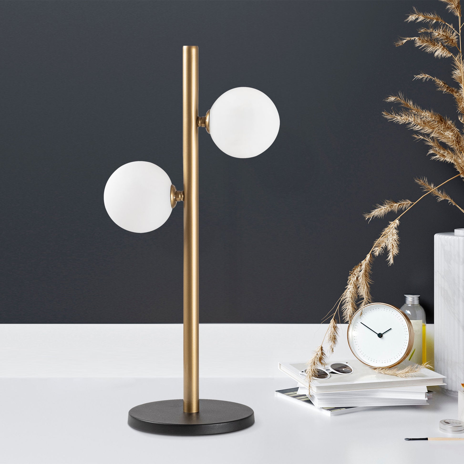Candeeiro de Mesa moderna com corpo de metal e tampa de vidro, design vintage, 26 x 18 x 52 cm, 2 soquetes G9, cabo de 200 cm, perfeita para decoração glamorosa e escandinava