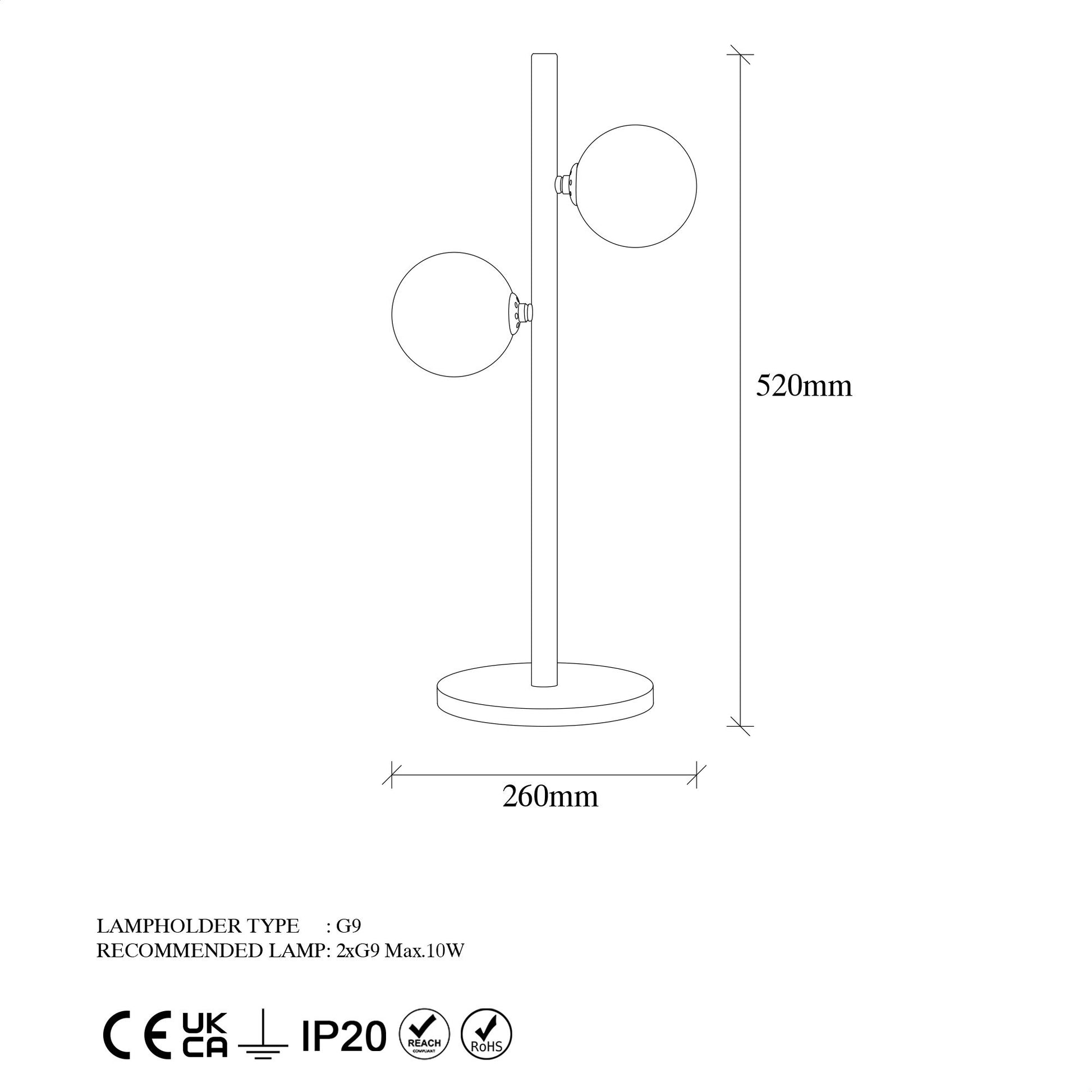 - Tipo de tomada: 2 x G9 Max 10 W