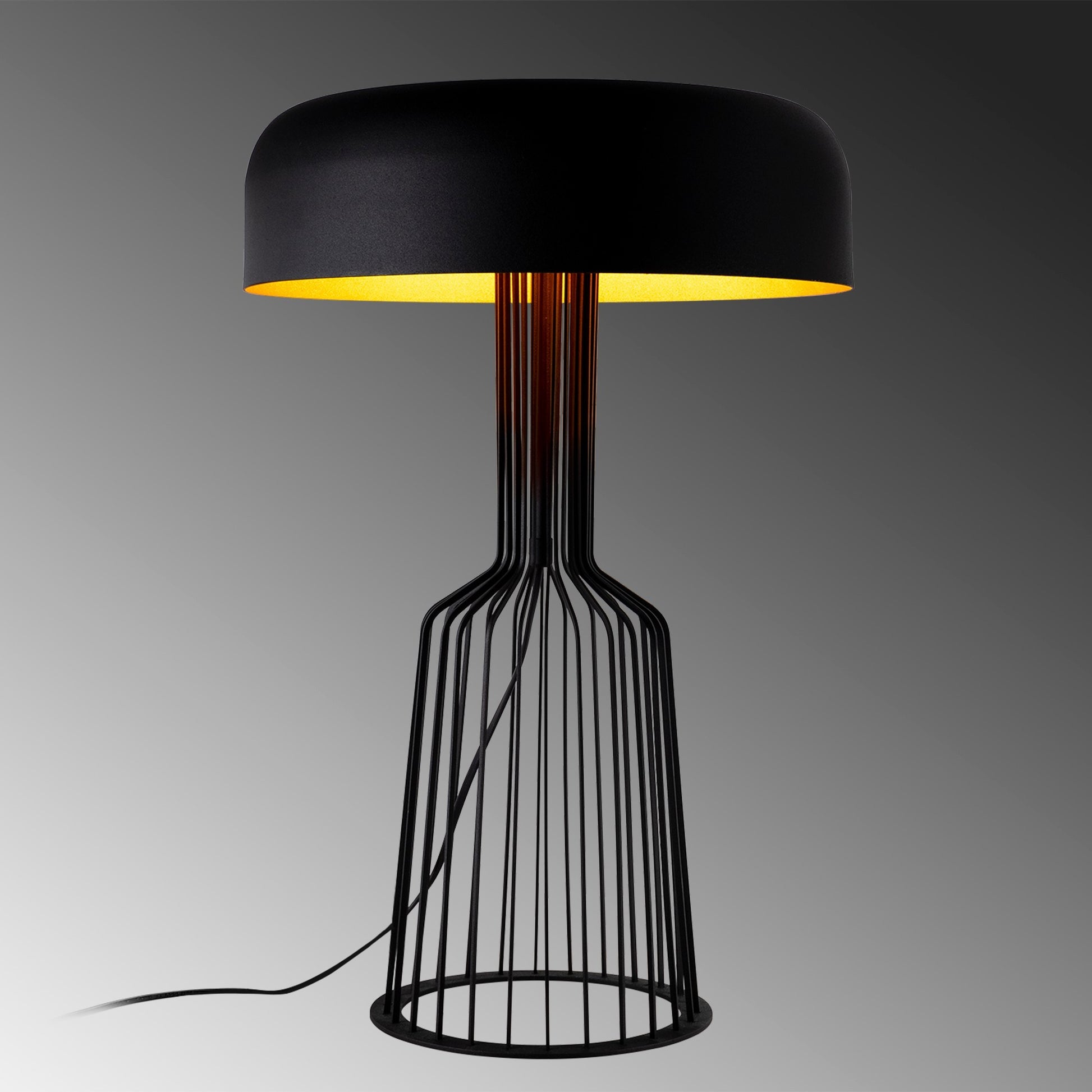 Candeeiro de Mesa Industrial Moderna, Preta e Dourada, 36 cm de Diâmetro, 57 cm de Altura | Corpo em Ferro, Soquete E27, 40 W Máx., Cabo de 200 cm | Iluminação Elegante para Casa e Escritório