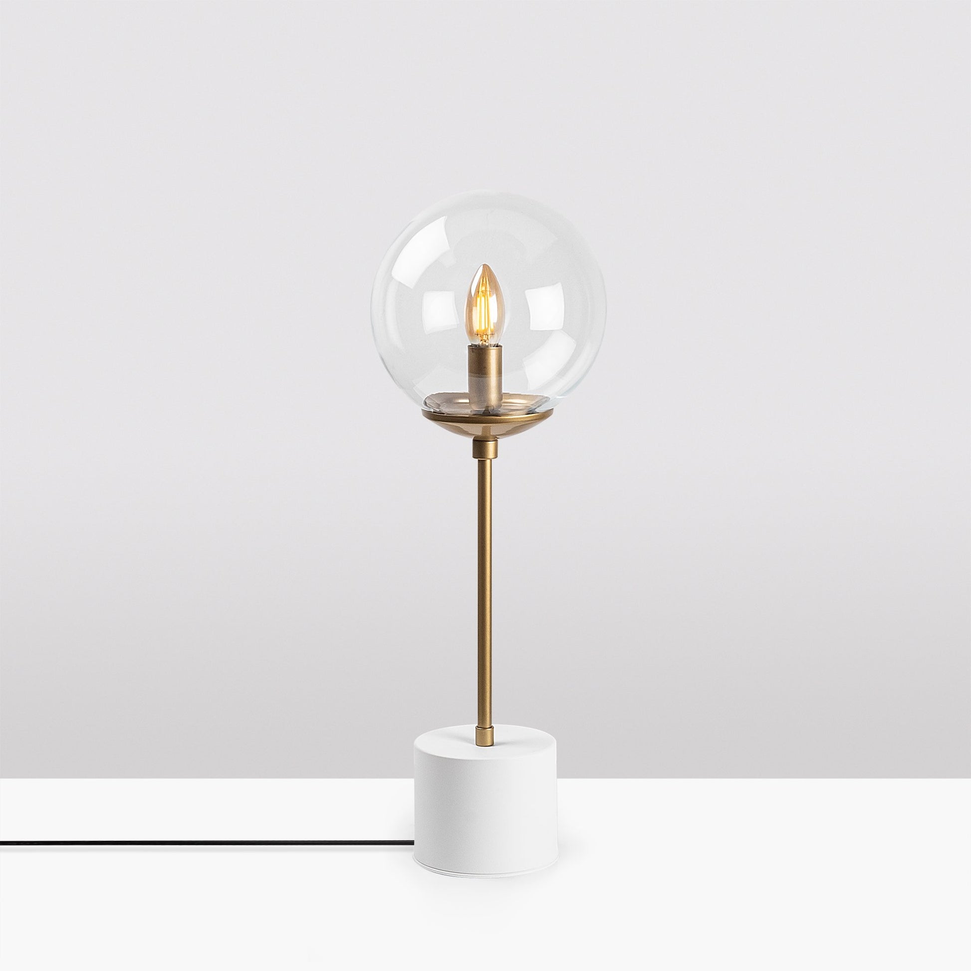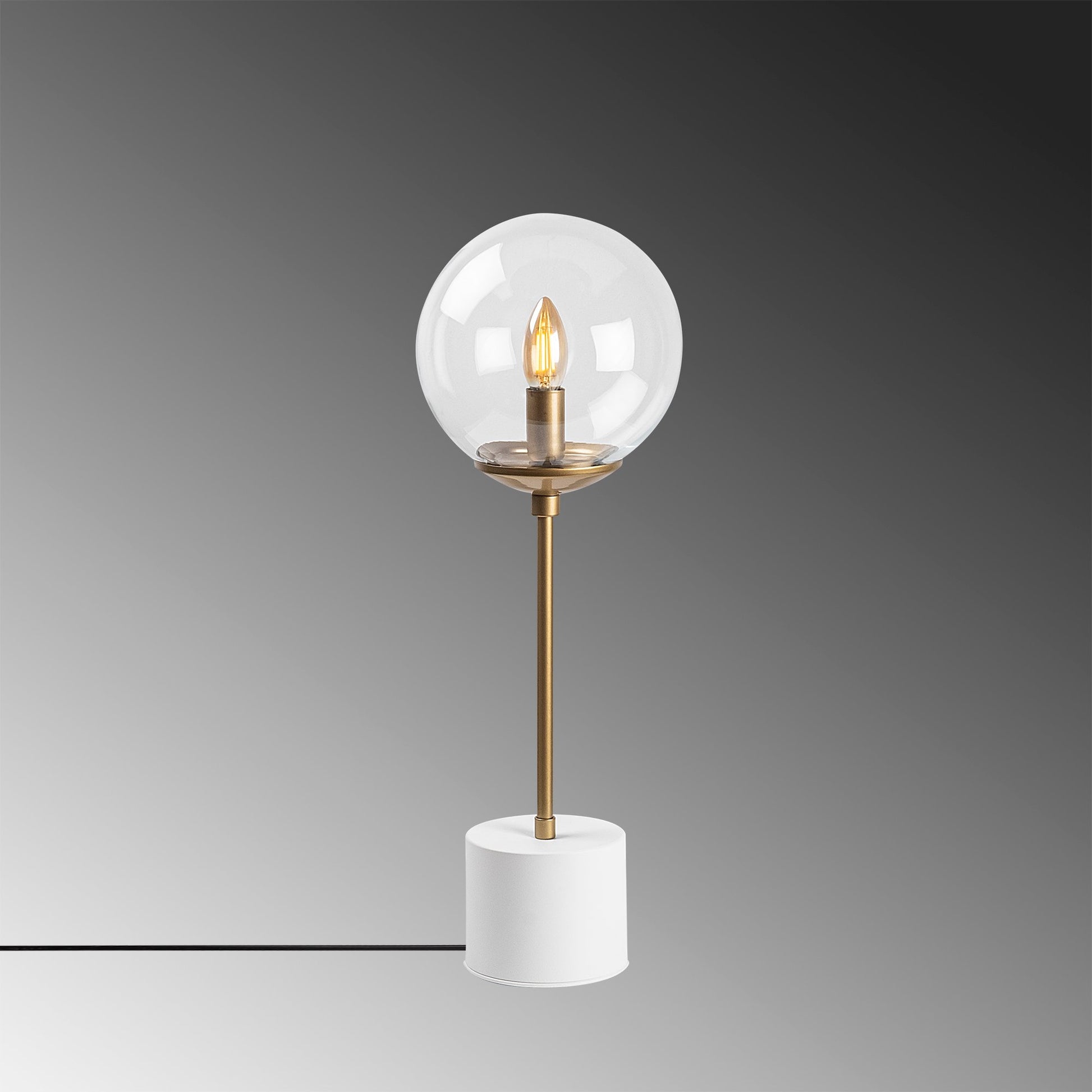 Candeeiro de Mesa Moderna com Corpo de Metal e Tampa de Vidro, 20 x 20 x 57 cm, Branca | Soquete E14, 40 W Máx., Cabo de 200 cm | Design Escandinavo Elegante para Decoração de Casa