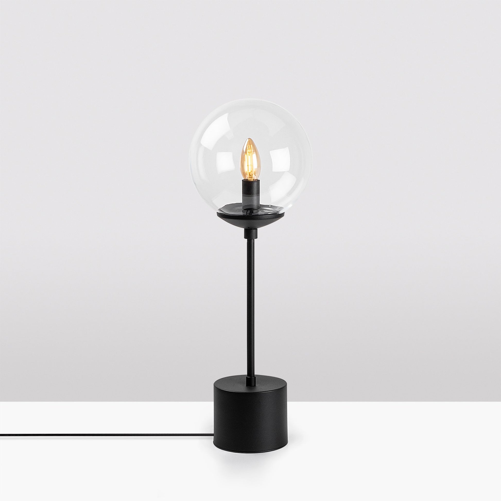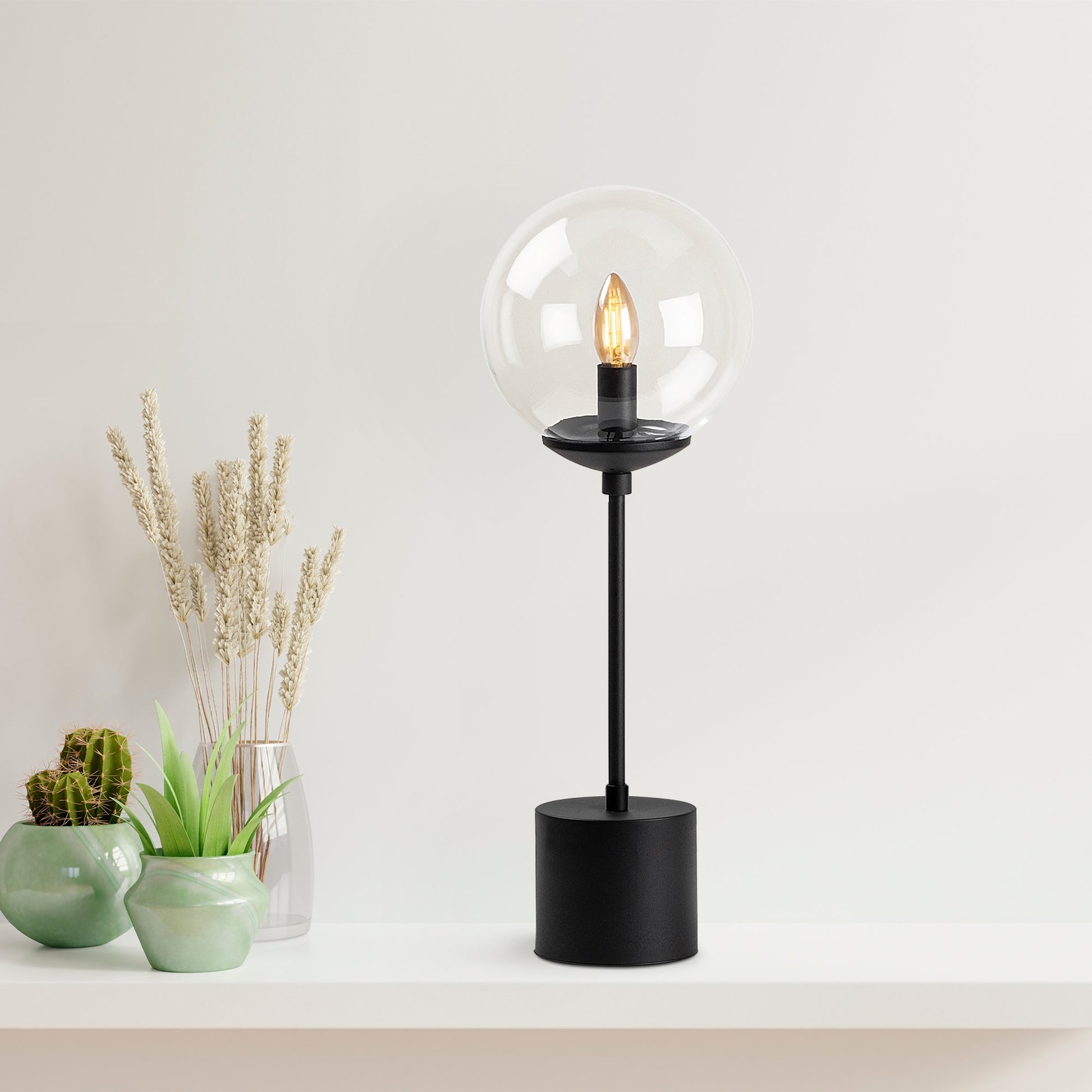 Candeeiro de Mesa Preta Moderna, Corpo de Metal com Tampa de Vidro, 20 x 20 x 57 cm | Soquete E14, Potência Máxima de 40 W, Cabo de 200 cm | Design Industrial Elegante para Casa e Escritório