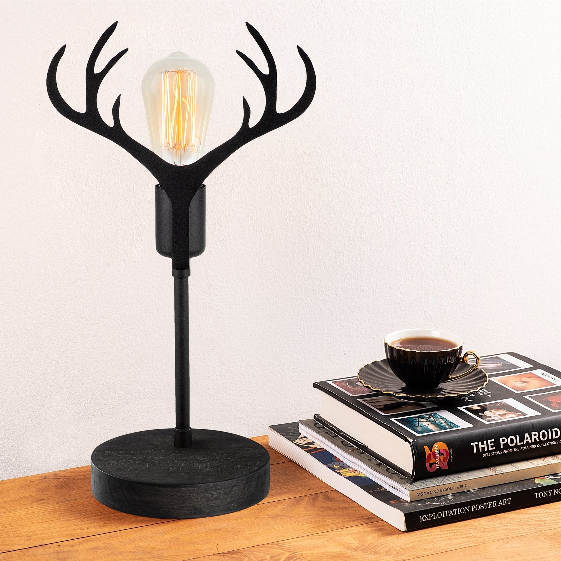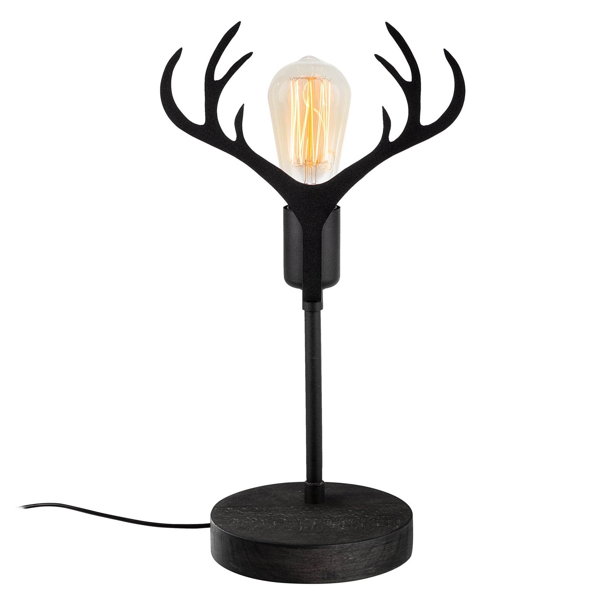 Candeeiro de Mesa elegante preta com corpo de metal e base de madeira, 40 cm de altura, soquete E27 (máx. 40 W), design elegante para casa e escritório, classificação IP20