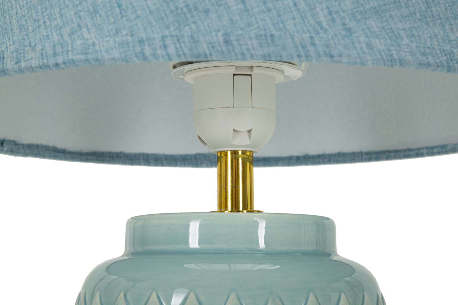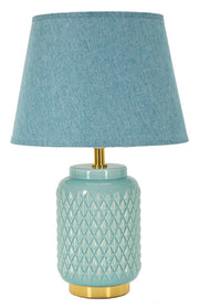 Dê um toque de sofisticação e cor ao seu quarto com o candeeiro de mesa MODERN. A sua base azul claro, decorada com elegantes diamantes em relevo, combina na perfeição com o abajur em tecido celestial, criando uma peça que é tanto funcional como estilosa. Fabricado em cerâmica, ferro e tecido, este candeeiro não só ilumina o seu espaço com suavidade, como também acrescenta um elemento de design moderno e requintado. Ideal para criar um ambiente acolhedor e elegante no seu quarto.