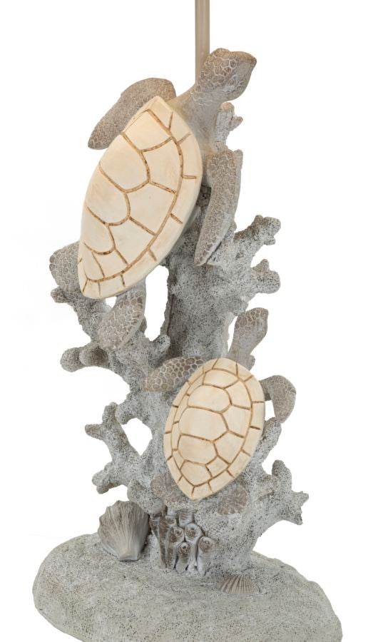 Ilumine o seu espaço com o deslumbrante candeeiro de mesa MODERN, uma peça única que combina design moderno com um toque natural. Este candeeiro, meticulosamente trabalhado em poliresina, ferro e tecido, é adornado com encantadoras tartarugas marinhas, trazendo um sopro de frescura e originalidade a qualquer divisão. Completo com um elegante abat-jour em tecido bege, este candeeiro não só proporciona uma iluminação suave e acolhedora, como também se destaca como um elemento decorativo sofisticado. Perfeito para quem procura aliar qualidade, estilo e funcionalidade, o candeeiro MODERN é a escolha ideal para transformar o ambiente da sua casa.