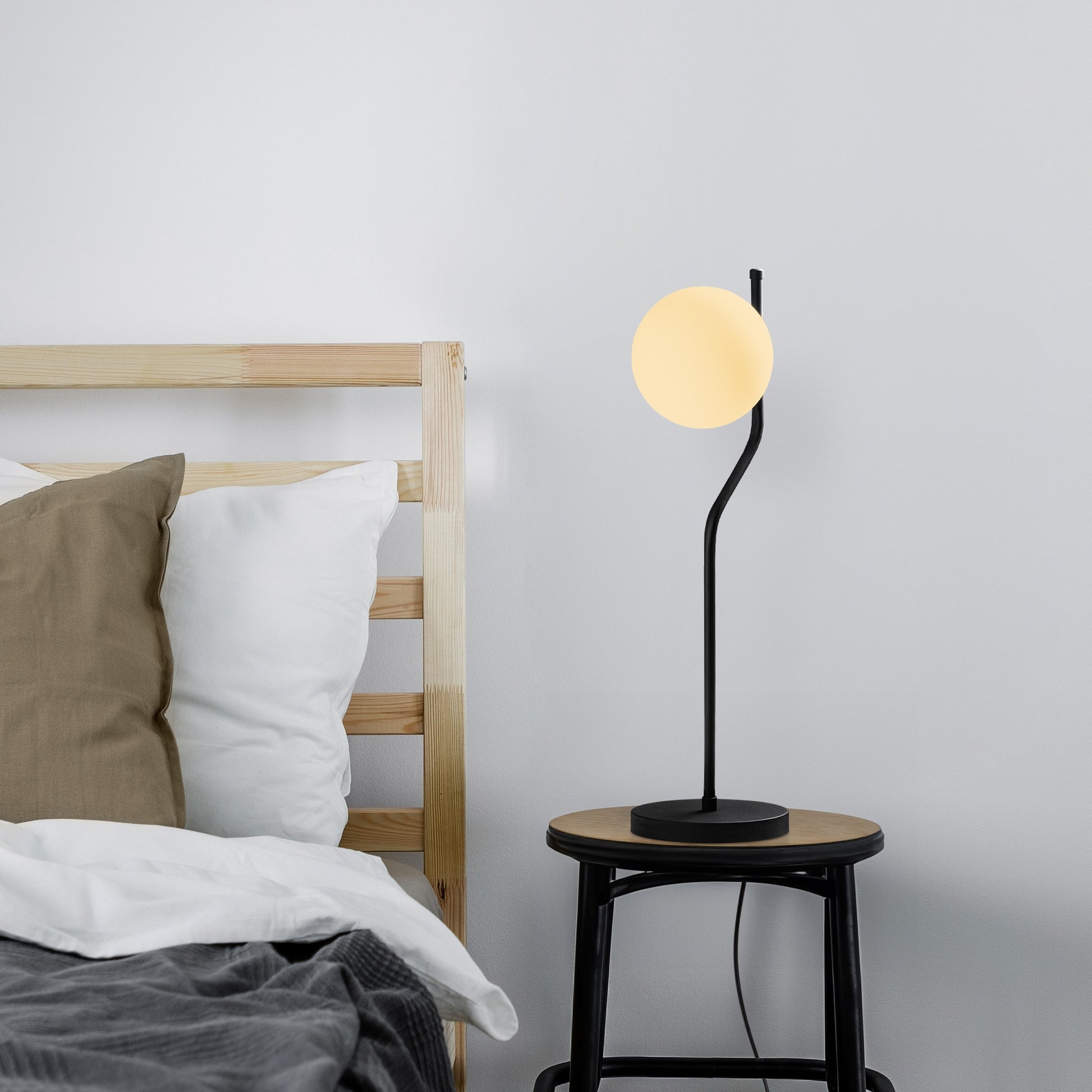 O corpo metálico deste candeeiro de mesa exala uma vibração moderna e elegante, perfeita para interiores contemporâneos. A elegante cor preta acrescenta um toque de sofisticação a qualquer divisão, tornando-o numa peça de destaque na decoração da sua casa.