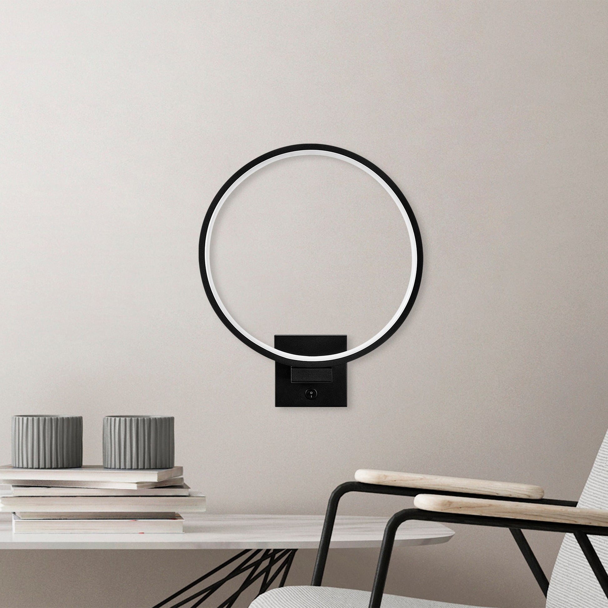 Candeeiro de Parede preta elegante, corpo de metal, 30 x 36 x 9 cm | LED integrado 12 W 3000 K | Classificação IP20, cabo de 200 cm | Perfeito para decoração e iluminação de casa moderna