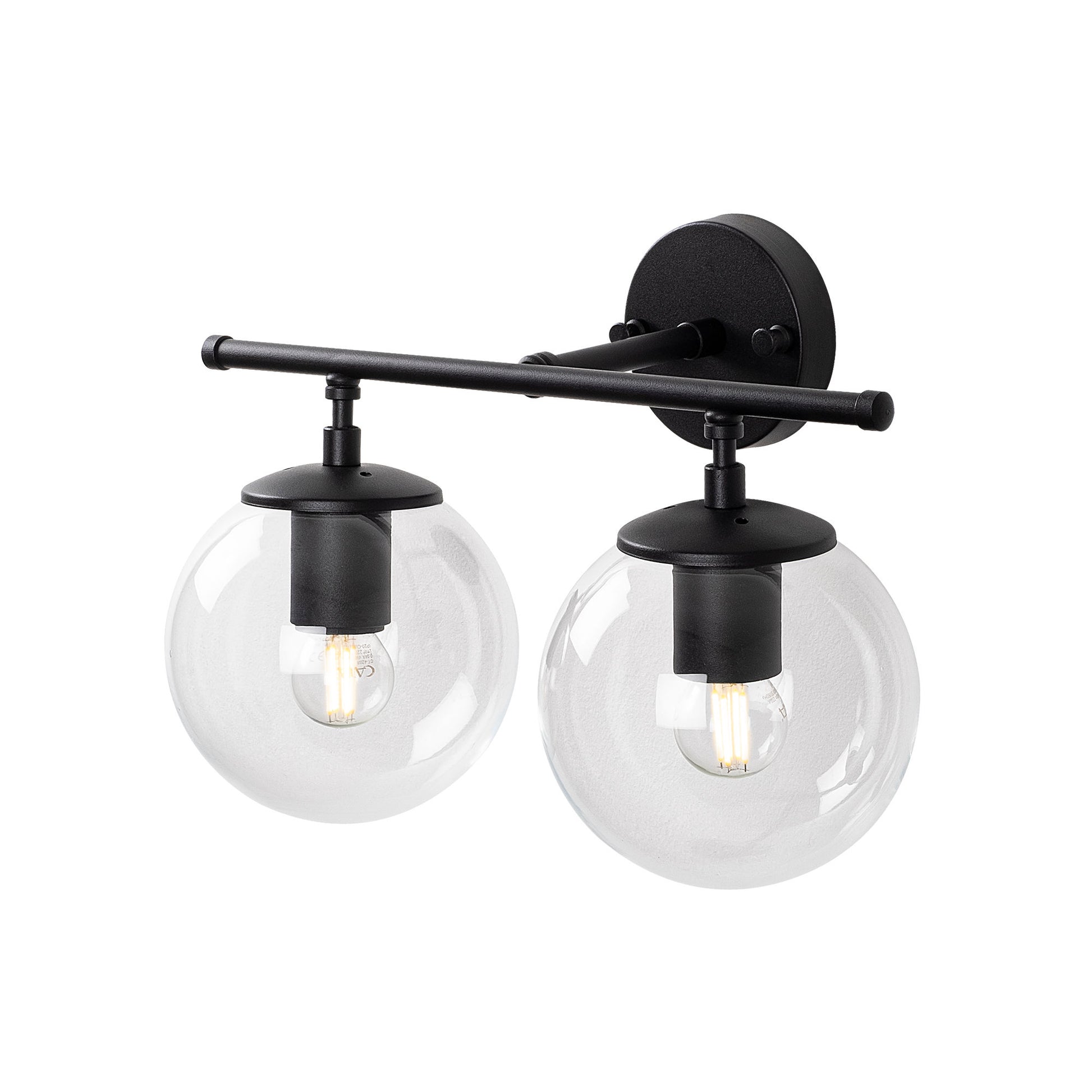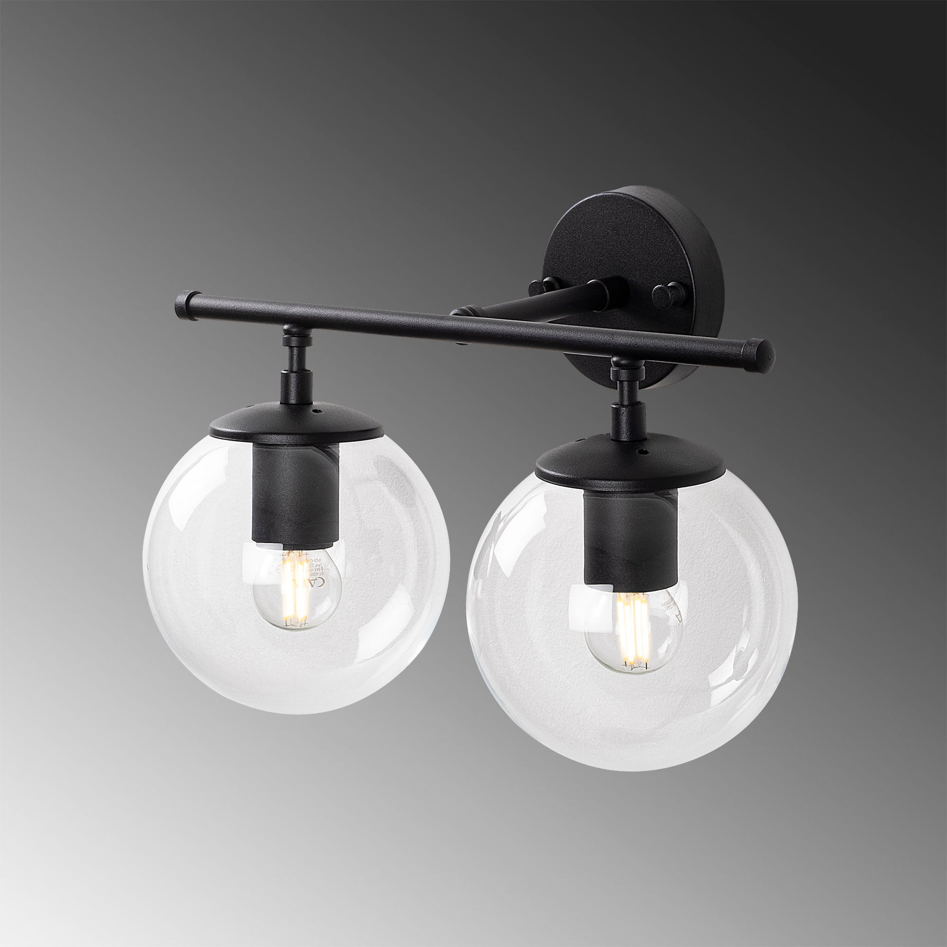 Candeeiro de Parede preta moderna, corpo de metal e tampa de vidro, 36 x 24 x 16 cm | IP20, botão liga/desliga, 2 soquetes E14 | Design industrial e escandinavo elegante