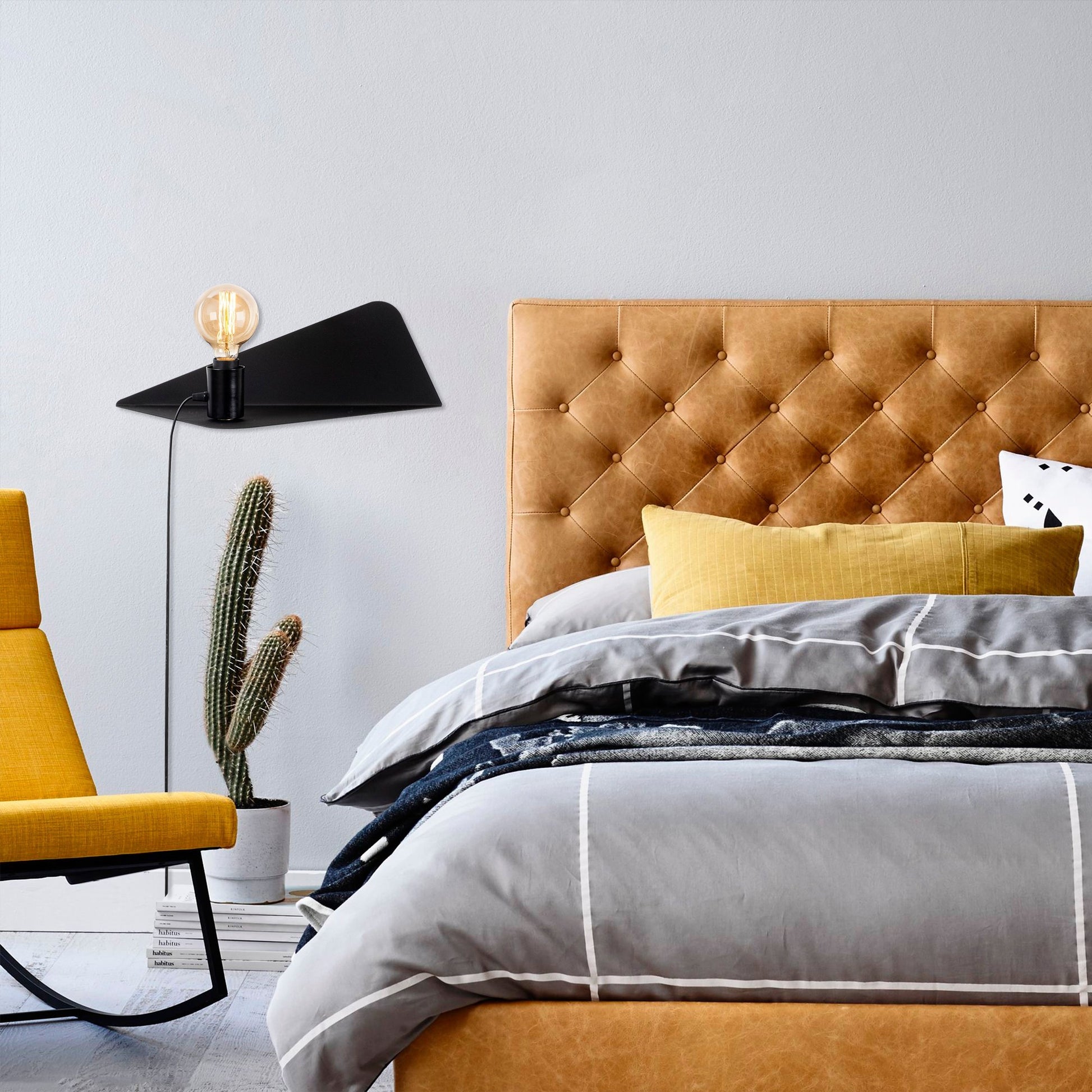 Candeeiro de Parede industrial preta, corpo de metal, 50 x 21 x 16 cm | Soquete E27, máx. 40 W | Iluminação plugável, elegante e funcional para espaços modernos