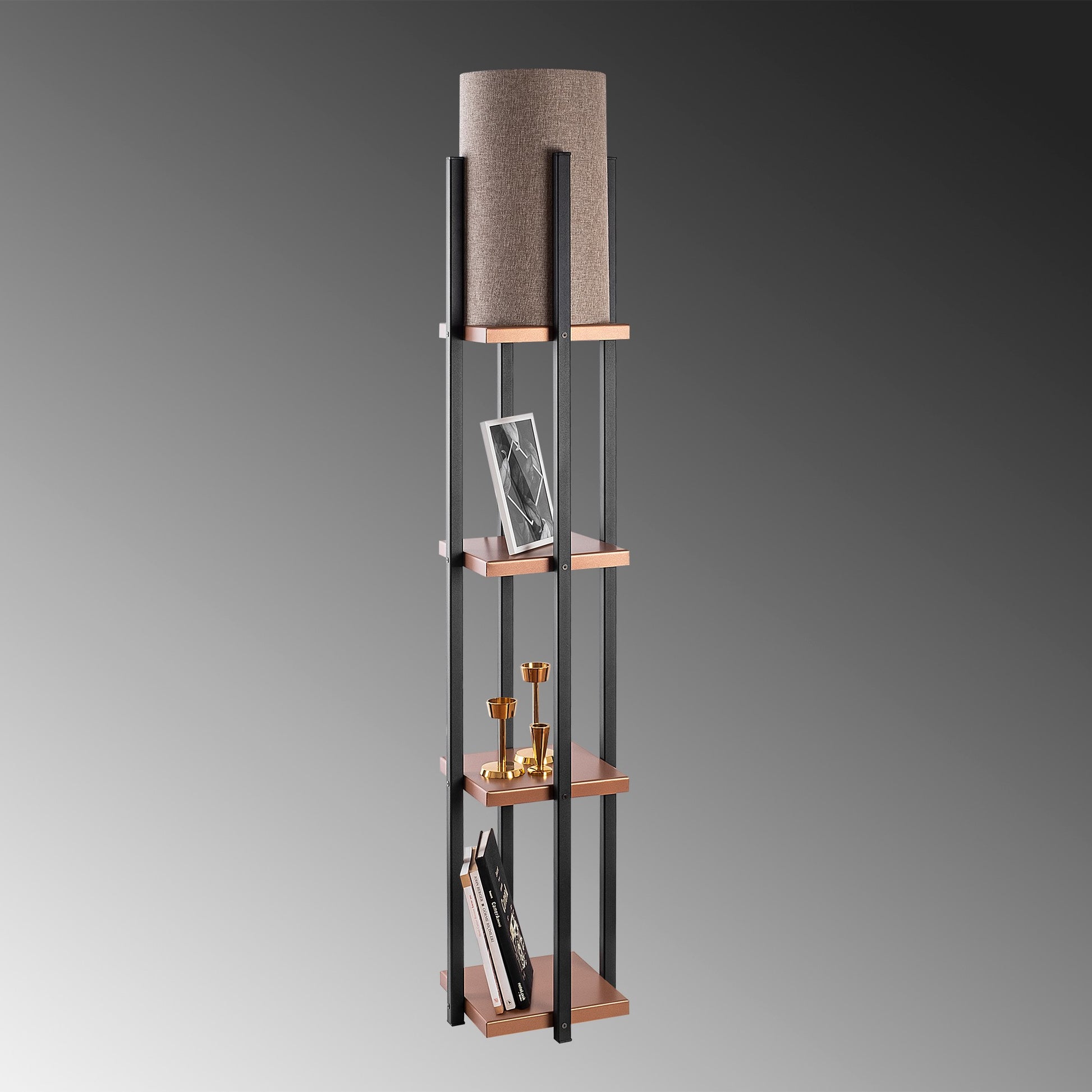 Candeeiro de Pé Escandinava, Preta e Cobre, 25 x 25 x 130 cm | Corpo de Metal, 1 Soquete E27, 40 W Máx., IP20, Cabo de 400 cm, Design Elegante e Funcional