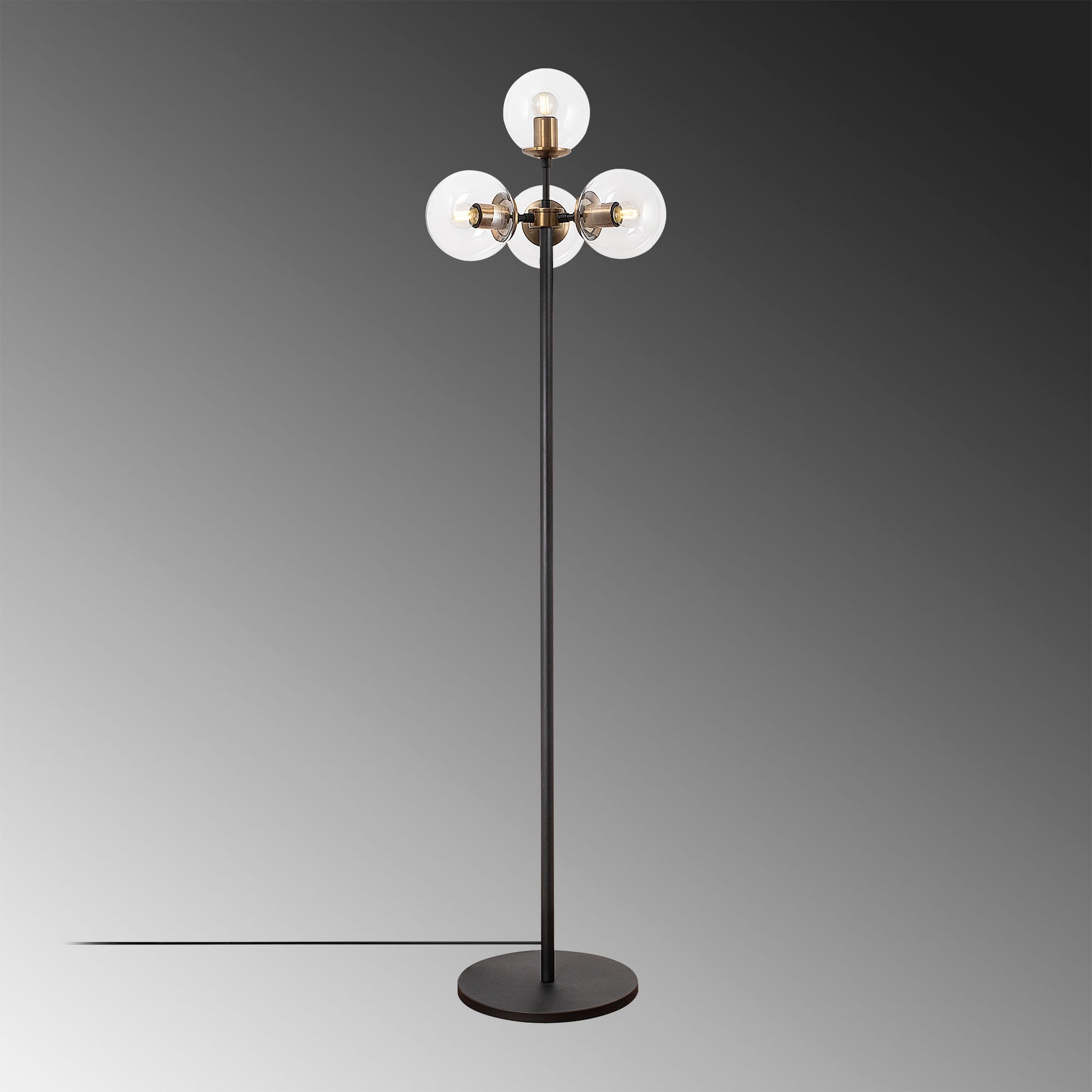 Candeeiro de Pé moderna com corpo de metal e tampa de vidro, 48 x 48 x 163 cm, acabamento preto e antigo, 4 soquetes E14, cabo de 200 cm, design escandinavo elegante