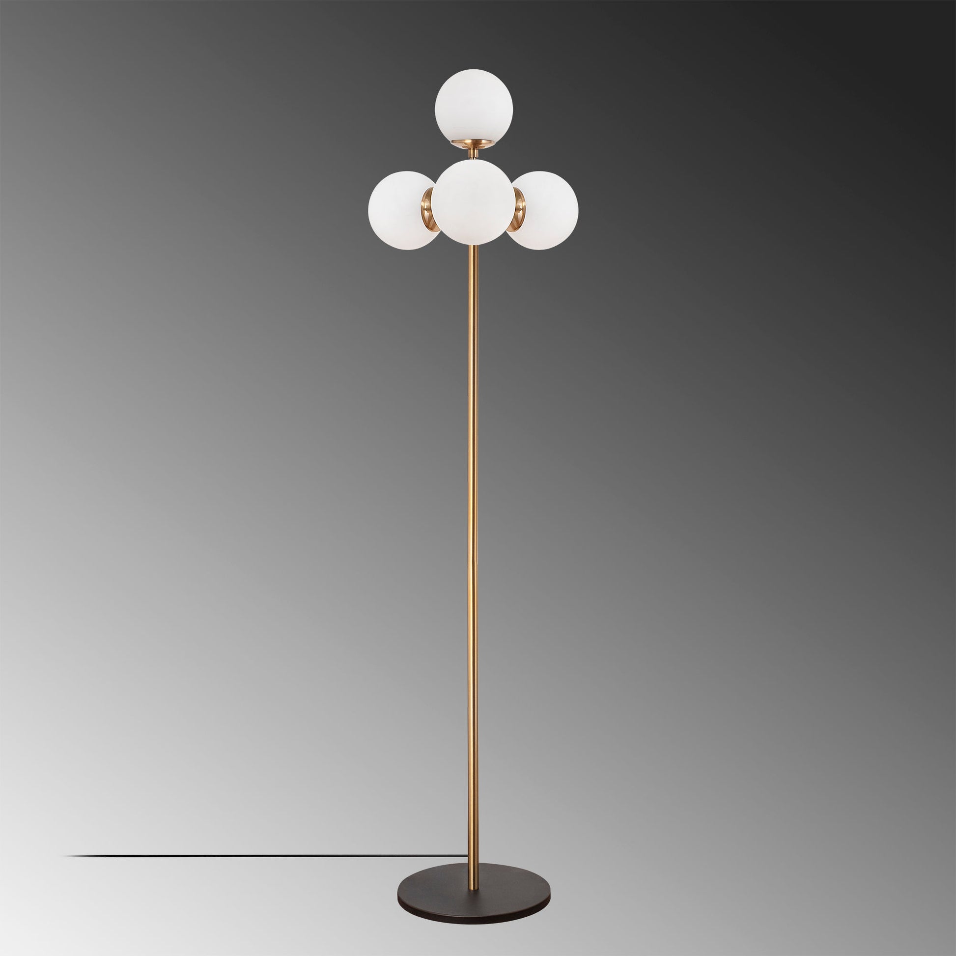 Candeeiro de Pé moderna com corpo de metal e tampa de vidro, design vintage, 48 x 48 x 163 cm | 4 soquetes E14, cabo de 200 cm, perfeita para decoração glamorosa e escandinava