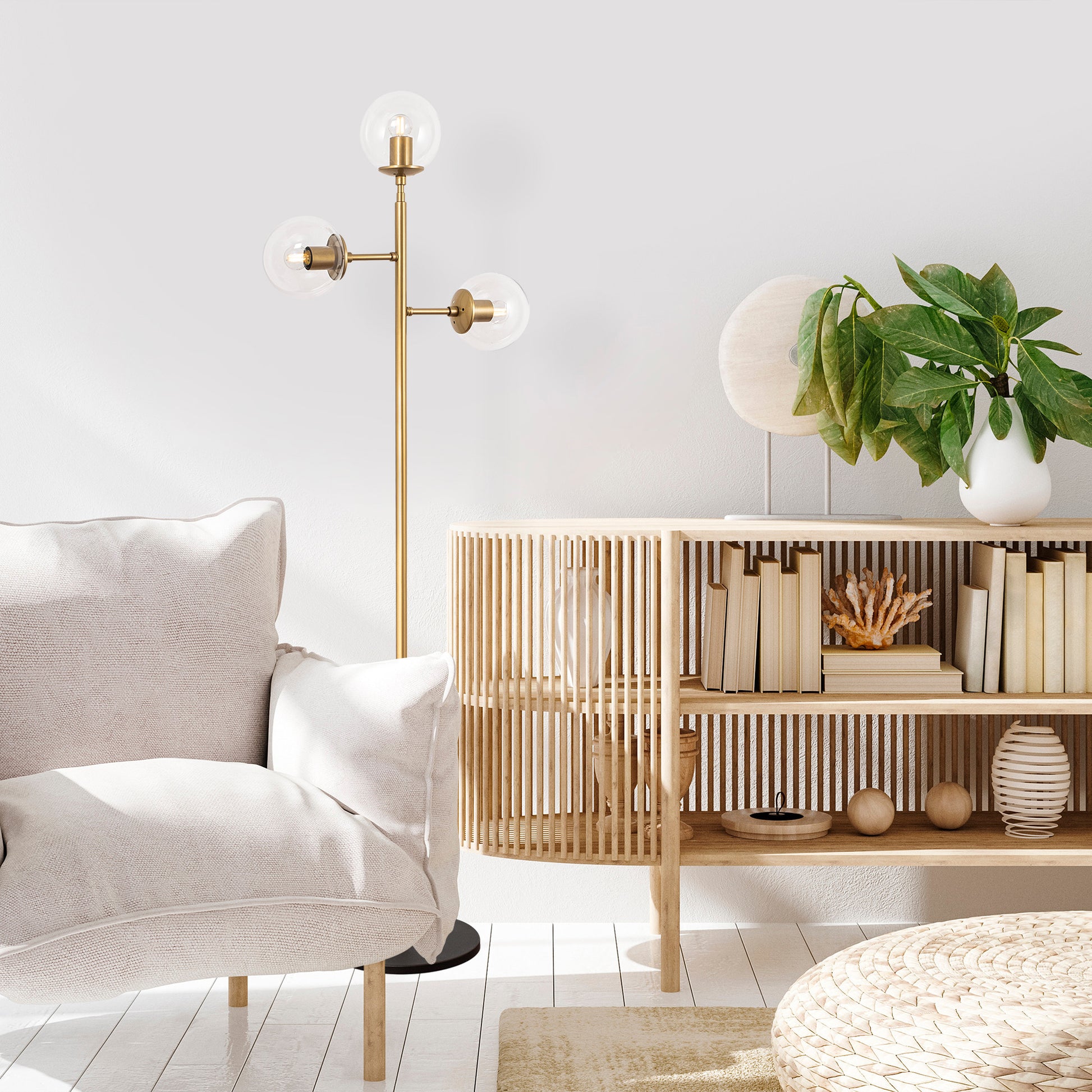 Candeeiro de Pé Elegante, Dourado Brilhante, 163 cm de Altura | Corpo e Base de Metal, Tampa de Vidro, IP20, 3 Soquetes E14 | Design Moderno e Glamouroso para Decoração de Casa e Hotel
