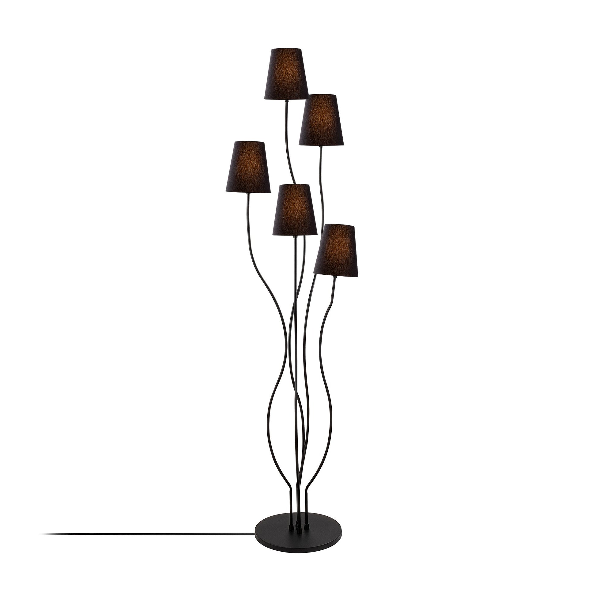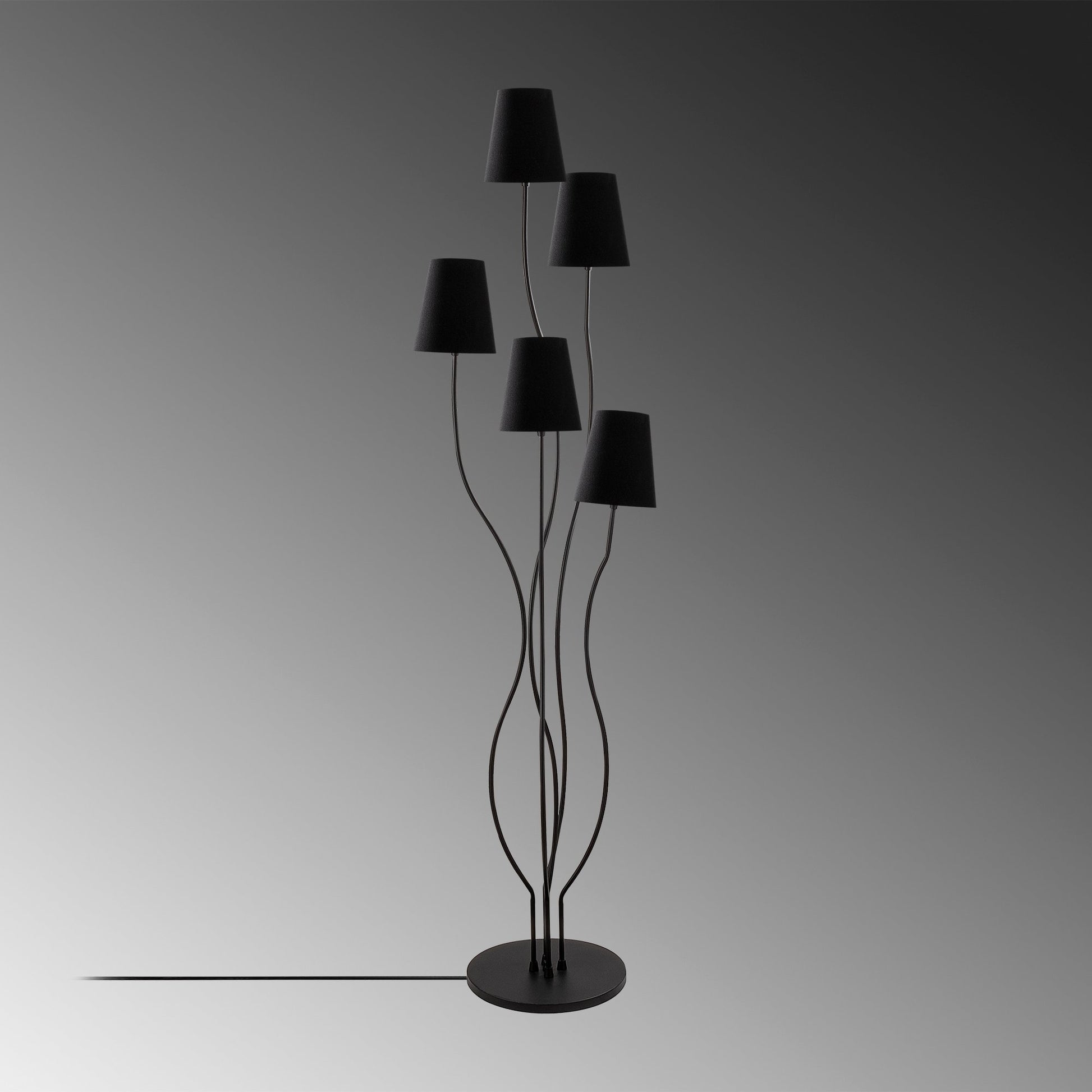Candeeiro de Pé industrial moderna, corpo de metal preto, 44 x 44 x 160 cm | Base de tecido (14 cm de diâmetro, 16 cm de altura) | 5 soquetes E14, cabo de 200 cm, elegante e funcional