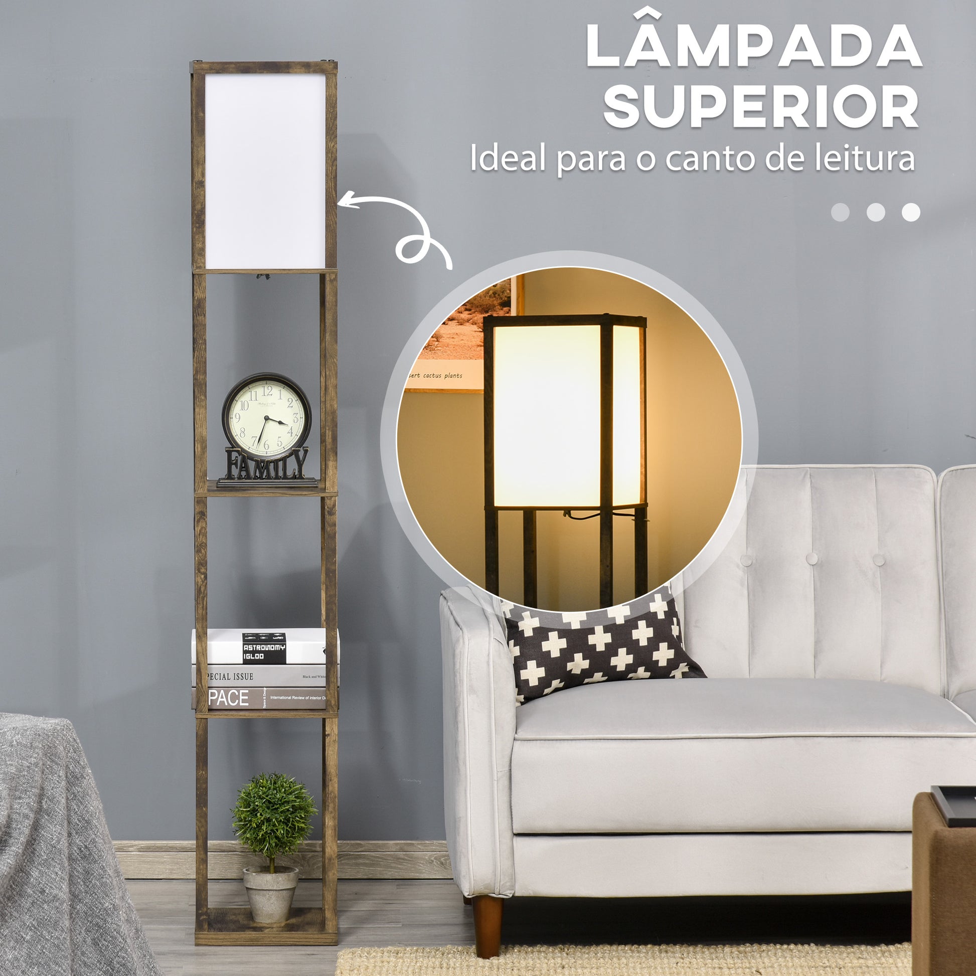 Adicione um toque de modernidade e funcionalidade à sua casa com este candeeiro de pé com 3 prateleiras de madeira em castanho rústico, medindo 26x26x160 cm.