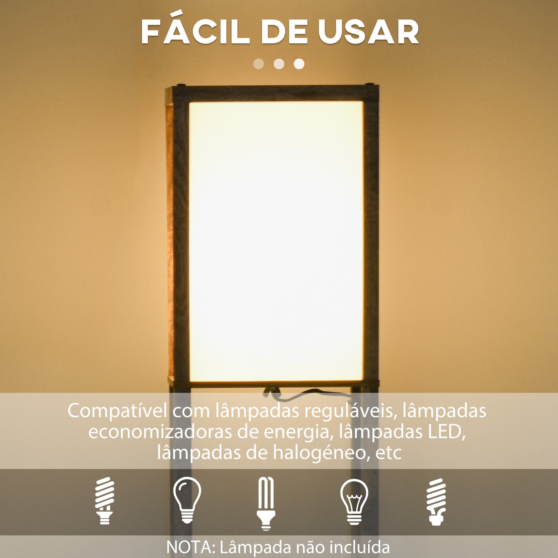 - Outras Especificações: Porta lâmpada E27 (lâmpada não incluída), interruptor de pé, cabo de alimentação de 1,8m