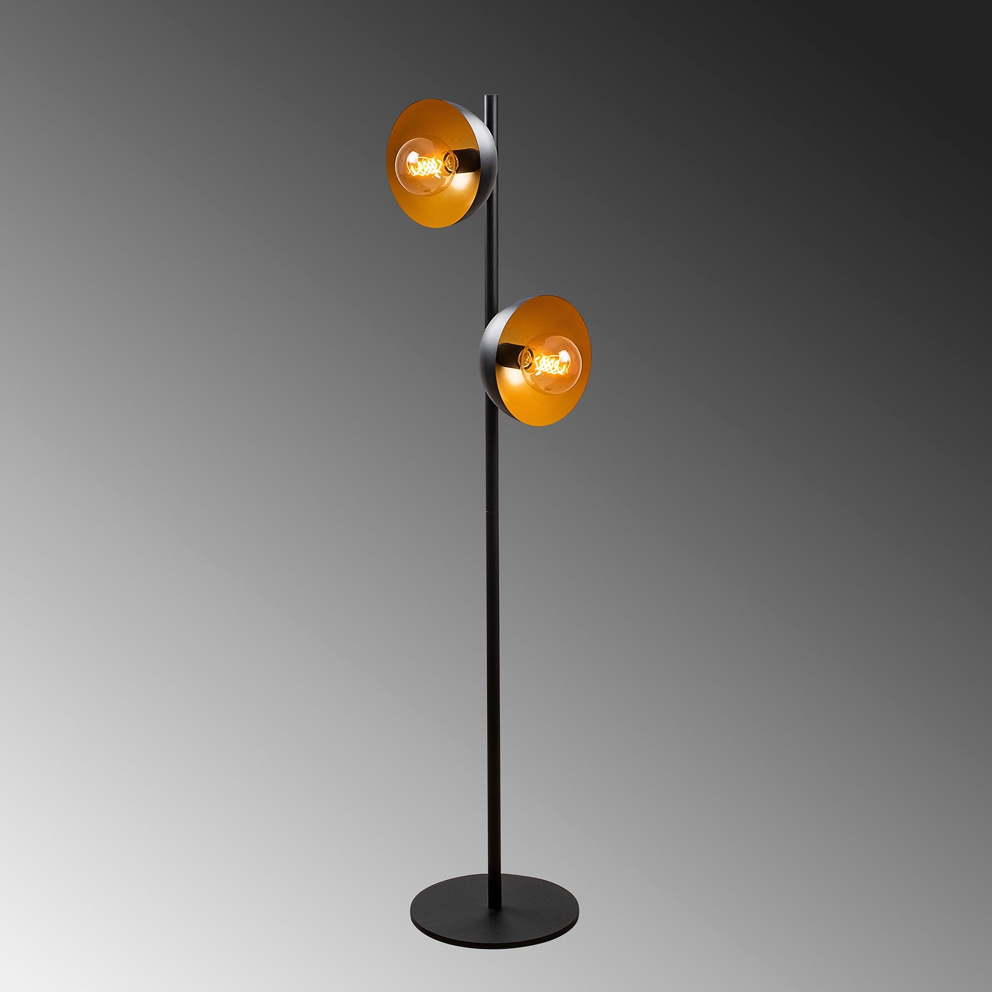 Candeeiro de Pé Moderna, Preta e Dourada, 131 cm de Altura | Corpo de Metal, 2 x E27 máx. 40 W, Base de 30 x 30 cm, Cabo de 350 cm | Design Glamour e Industrial para Decoração de Casa