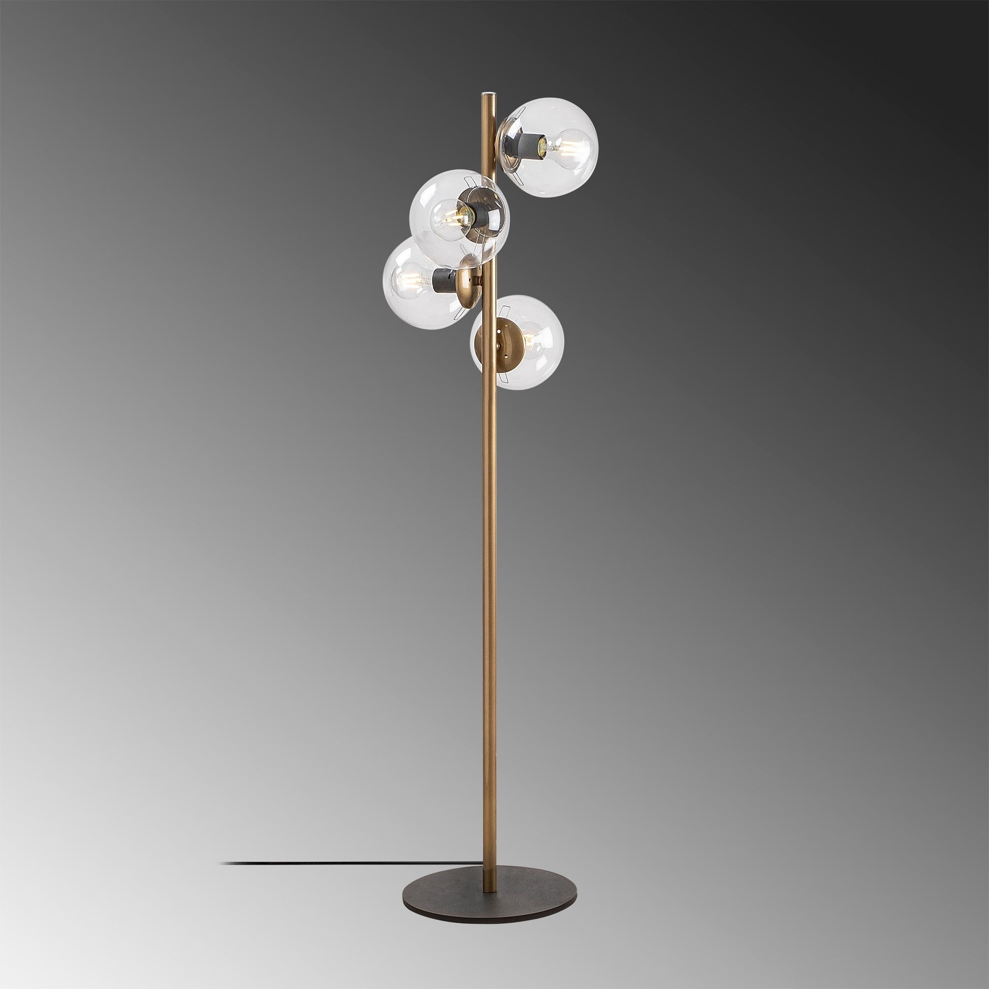 Candeeiro de Pé escandinava, corpo em metal dourado, 130 cm de altura, base de 32 x 32 cm, 4 soquetes E27, design elegante para decoração moderna, classificação IP20