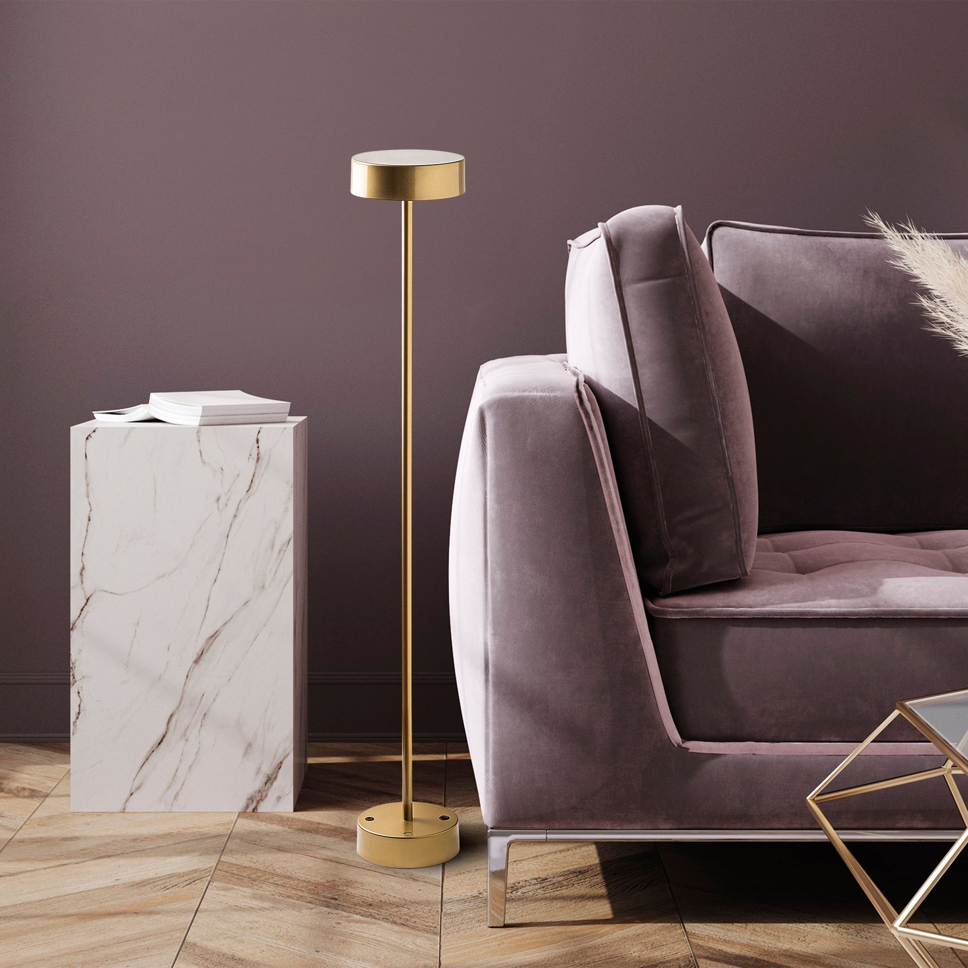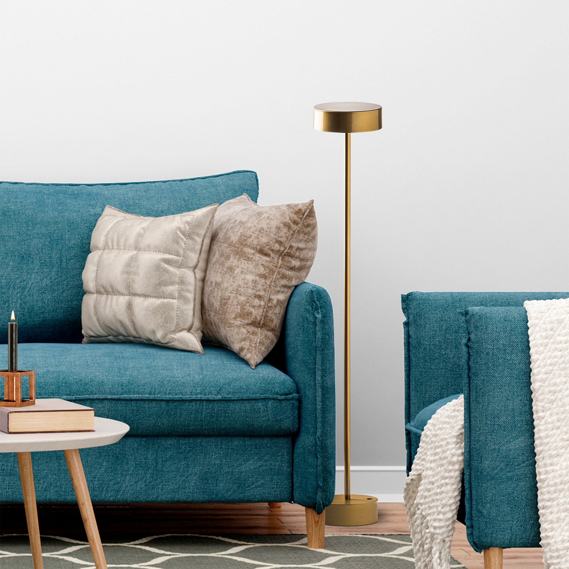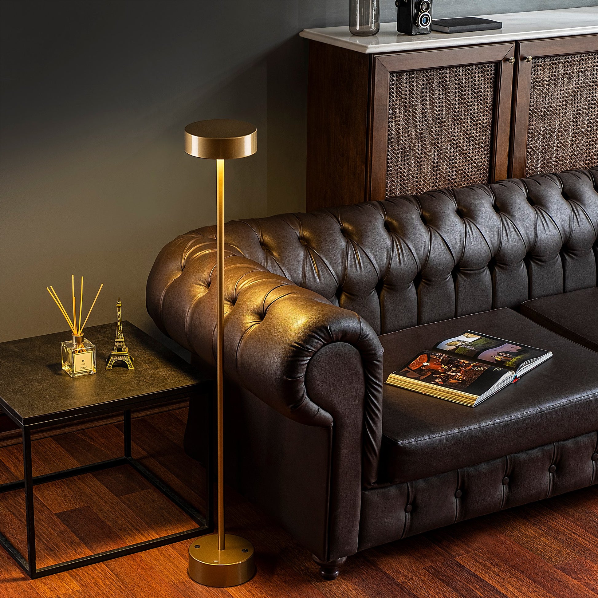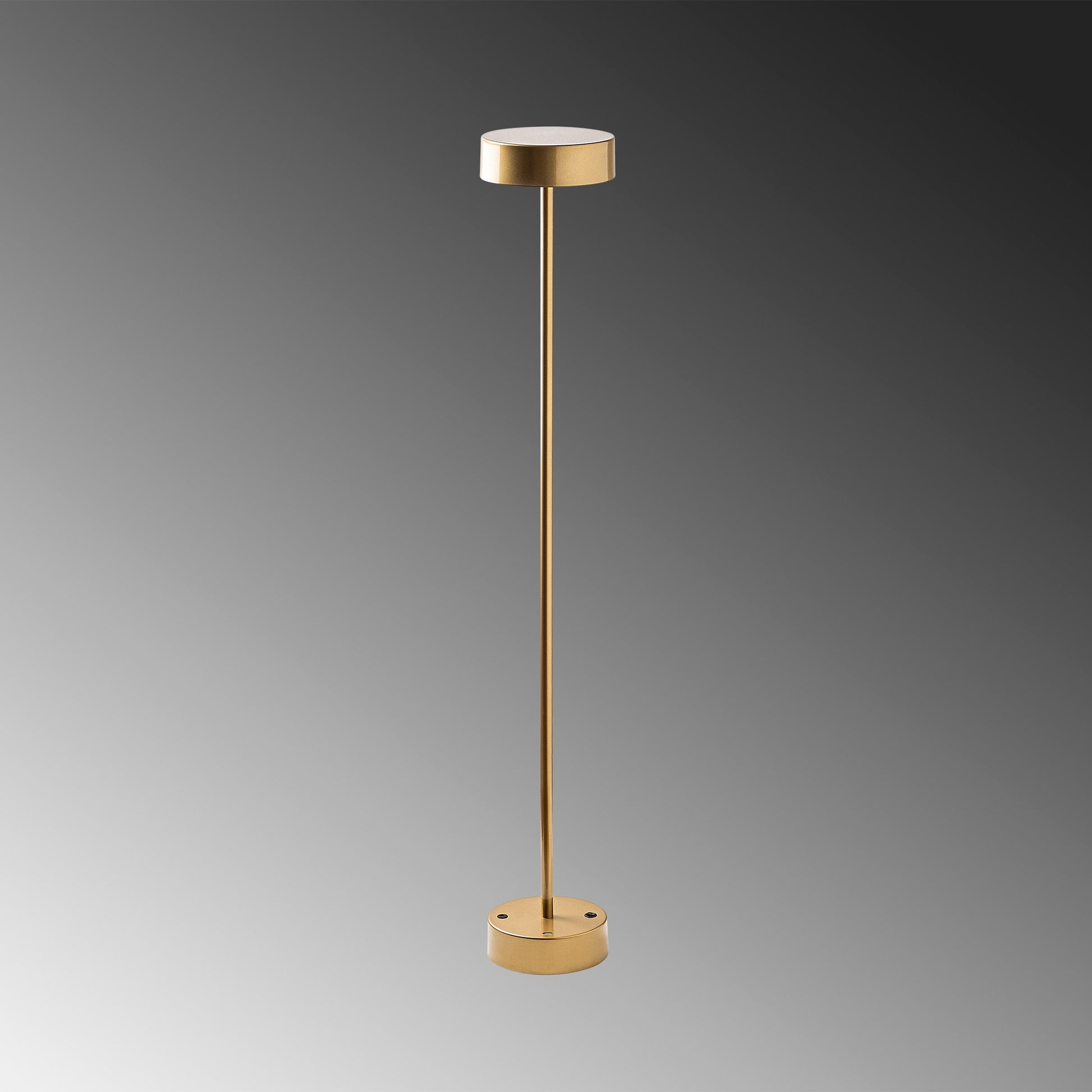 Candeeiro de Pé elegante dourada, corpo de metal, 111 cm de altura, 16 cm de diâmetro, 80 CRI, LED 5W 3000K, duração de luz de 8 horas, perfeita para decoração moderna