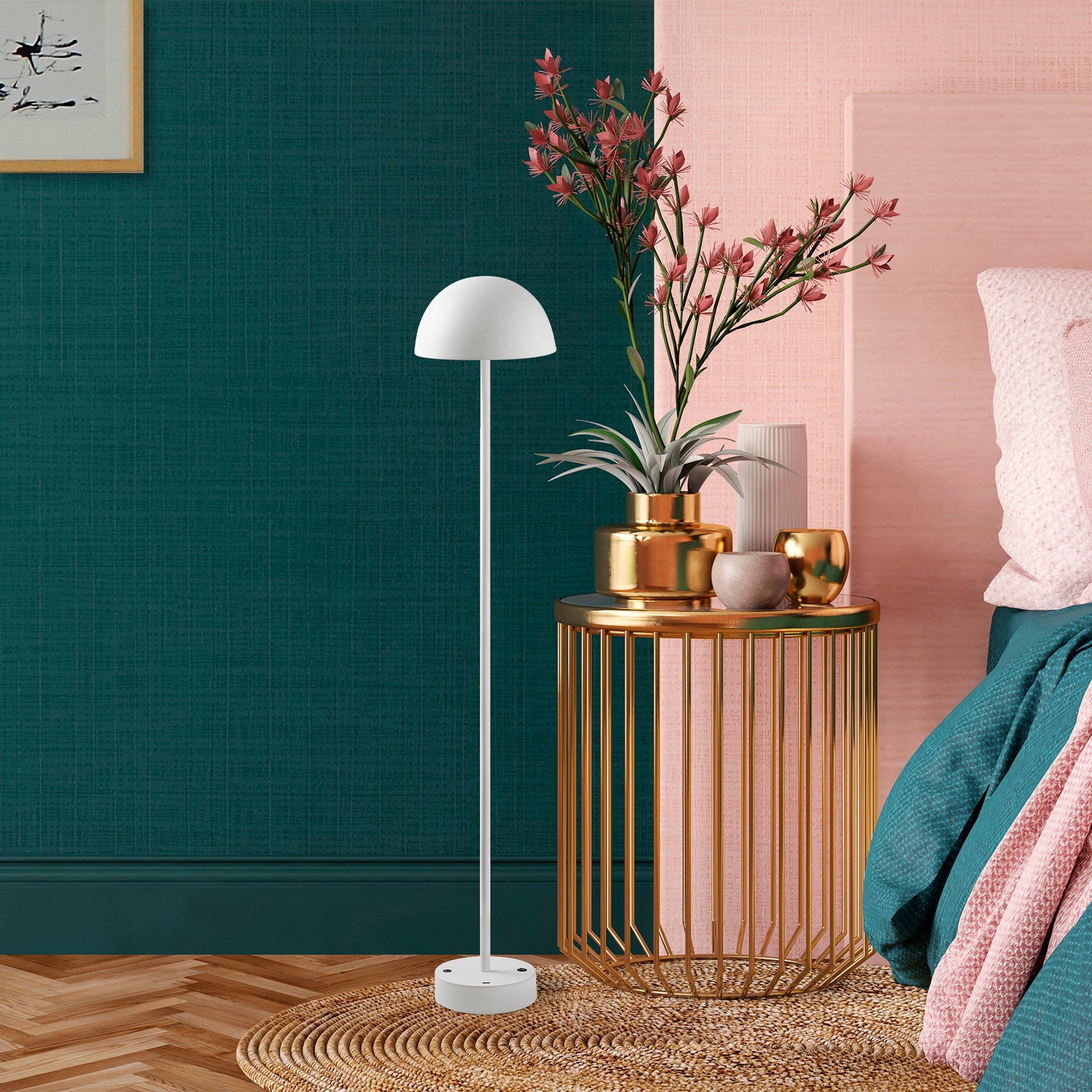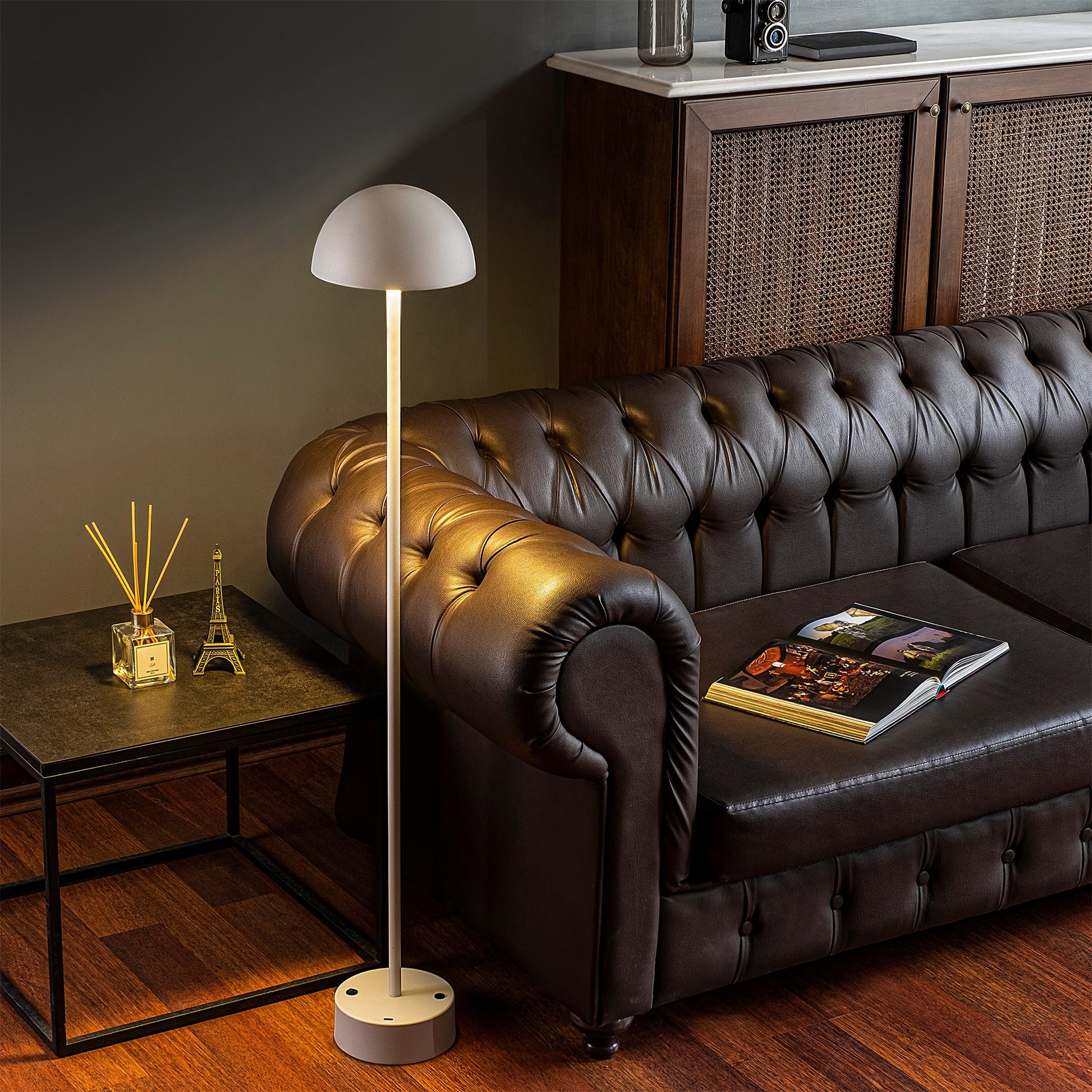 Candeeiro de Pé branca elegante, corpo de metal, 115 cm de altura, 20 cm de diâmetro, 80 CRI, LED de 5 W, bateria com duração de 8 horas, perfeita para decoração e iluminação de casa moderna