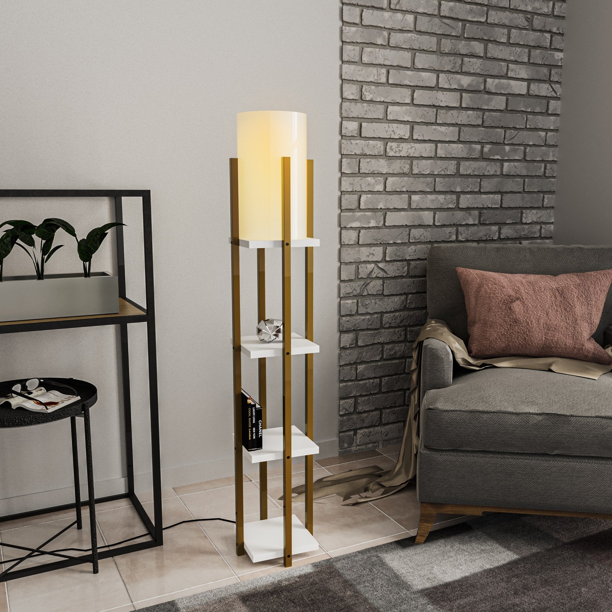 Candeeiro de Pé – 130 cm de Altura – Dourado e Branco – Metal