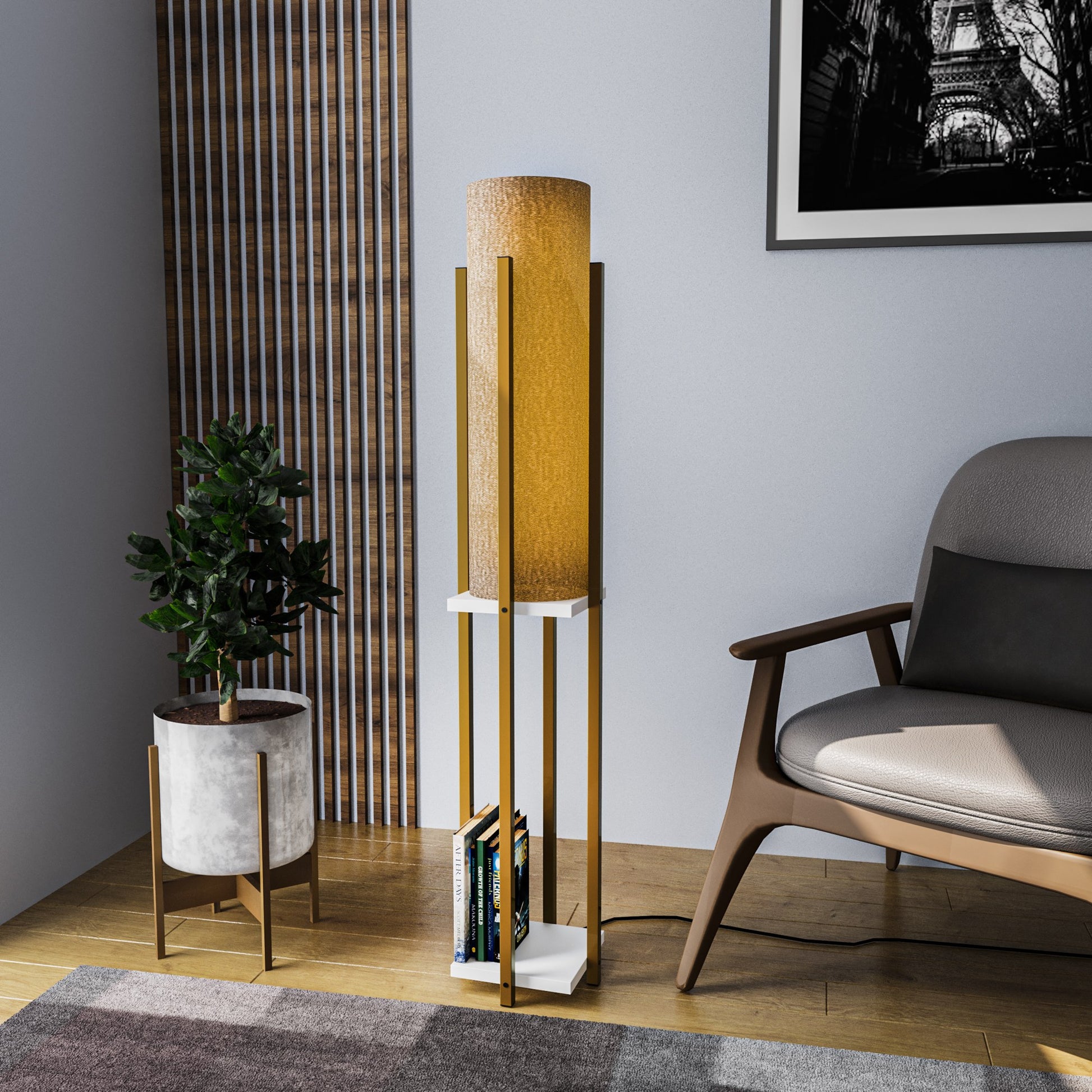 Eleve o seu espaço com o deslumbrante candeeiro de pé dourado e branco