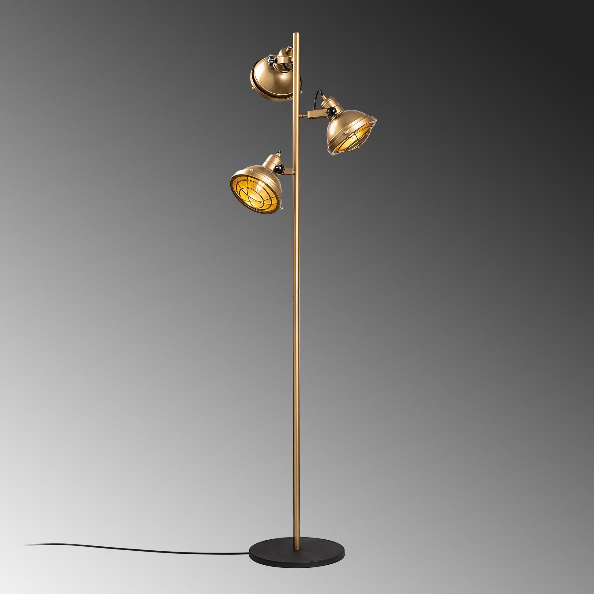 Candeeiro de Pé Elegante Dourada, Corpo em Metal, 37 x 37 x 162 cm | Base Ø30, Cabo de 250 cm, Interruptor Liga/Desliga | Iluminação Elegante para Decoração Moderna, IP20