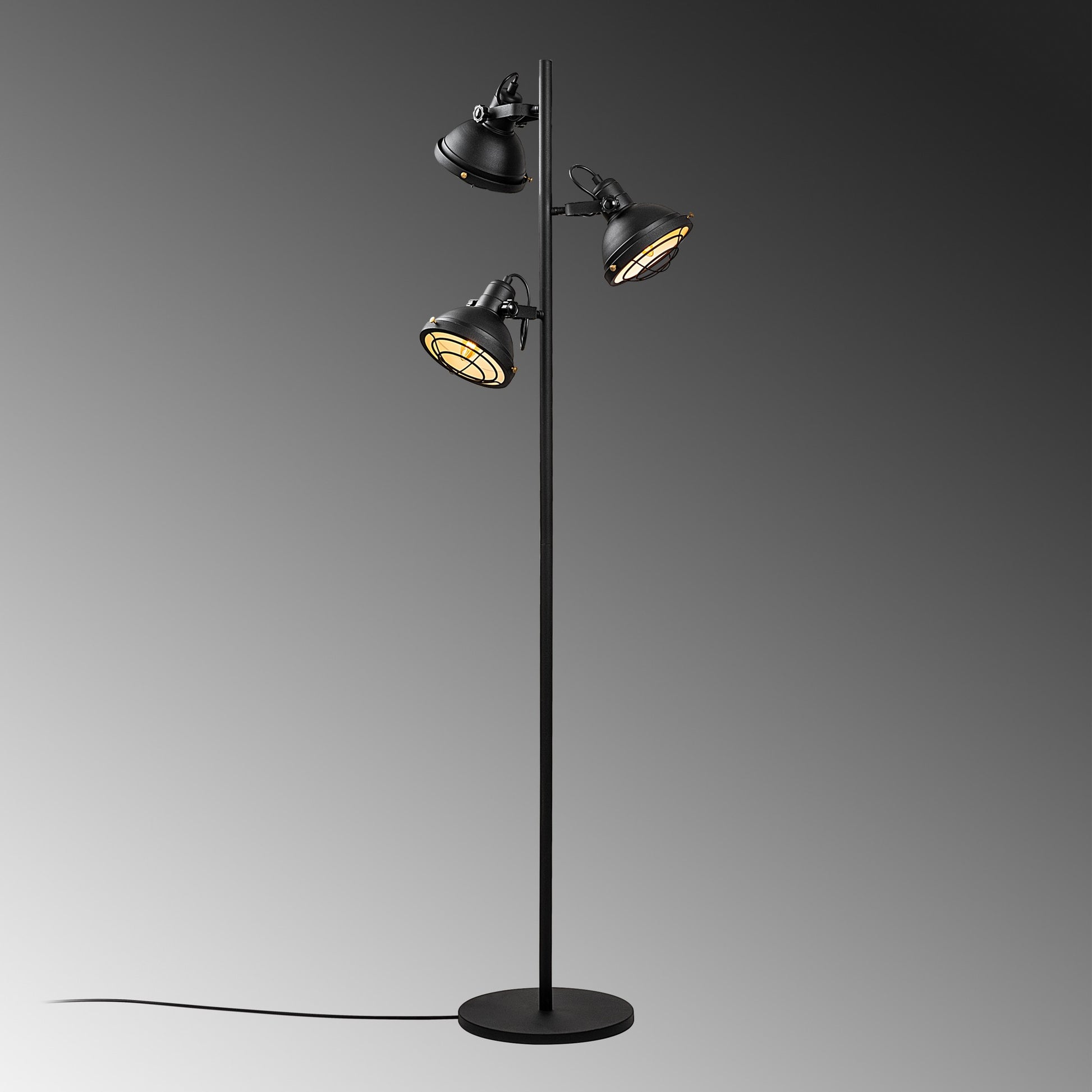 Candeeiro de Pé elegante preta, corpo de metal, 37 x 37 x 162 cm | Base Ø30, cabo de 250 cm, interruptor liga/desliga | Ideal para salas de estar e quartos modernos