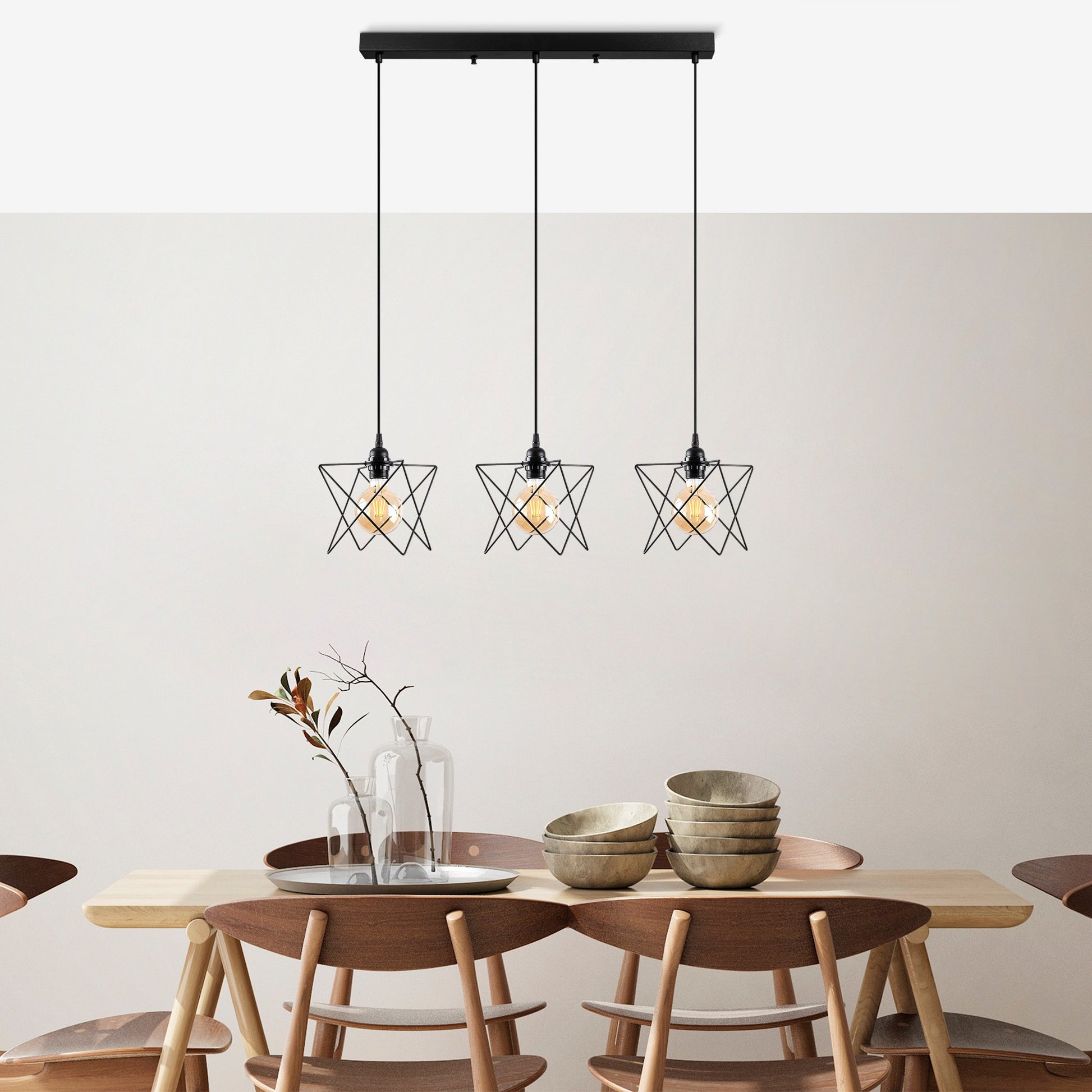 Candeeiro de Teto Industrial, Corpo em Metal Preto, Altura Ajustável 30-120 cm, 98 x 24 cm, 3 Soquetes E27, IP20 | Perfeito para Decoração Moderna de Casa e Escritório