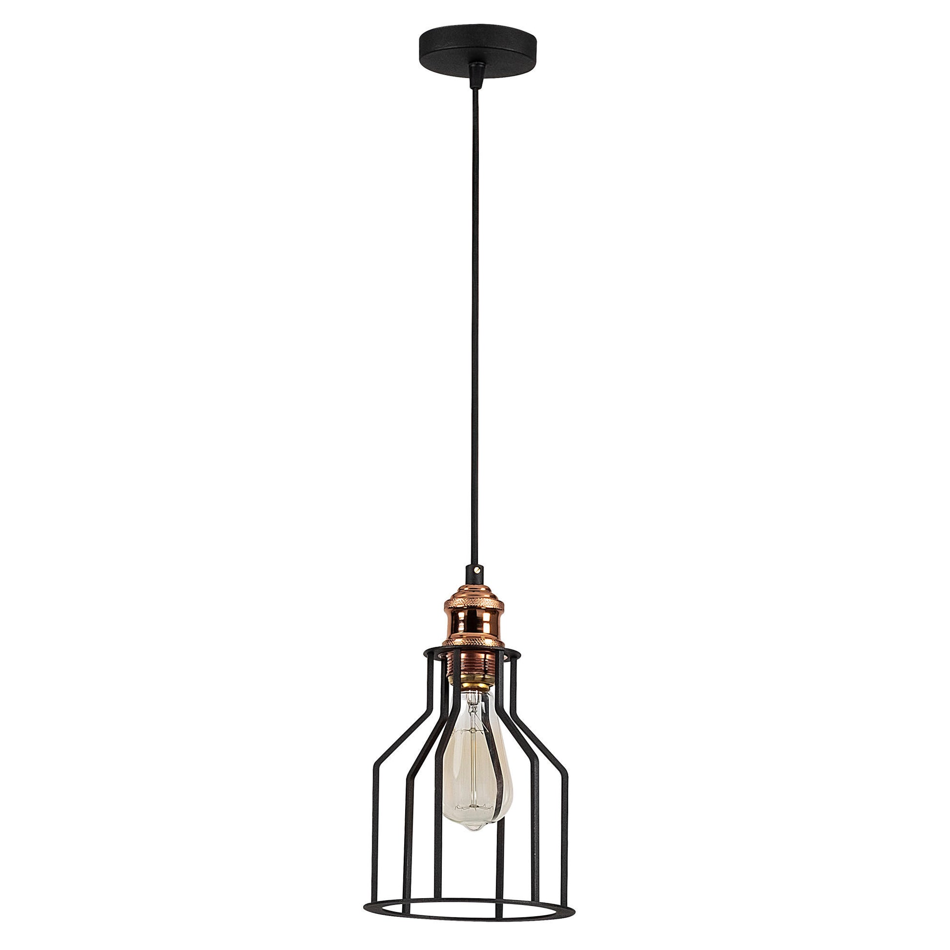 Candeeiro de Teto Industrial Moderno, Preto e Bronze, 17 cm de Diâmetro, 113 cm de Altura | Soquete E27, 40 W Máx., Iluminação Elegante para Casa e Escritório