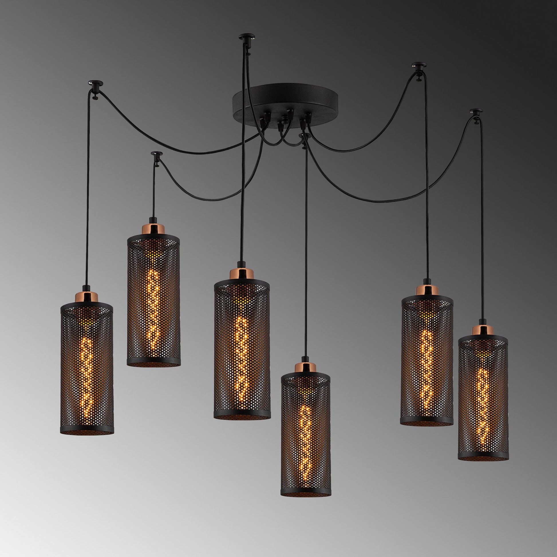 Candeeiro de Teto Industrial Moderno, Preto e Bronze, 130 x 10 cm, Altura 114 cm | Ajustável, 6 x E27 Máx. 40 W, Design Elegante para Casa e Escritório