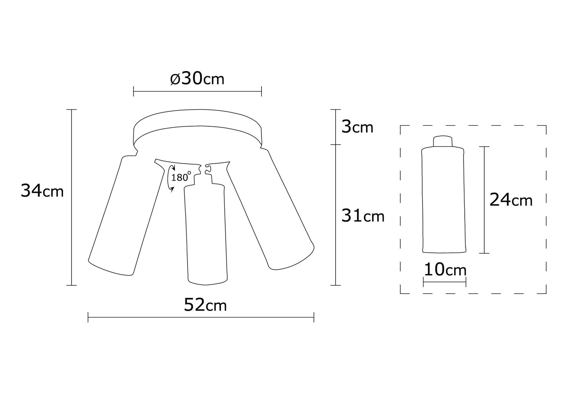 Com um diâmetro de 52 cm e uma altura de 34 cm, este candeeiro chama a atenção e torna-se o ponto focal de qualquer espaço. A sua cativante combinação de cores preto e dourado acrescenta um toque de sofisticação e luxo, elevando o ambiente da sua sala a novos patamares.