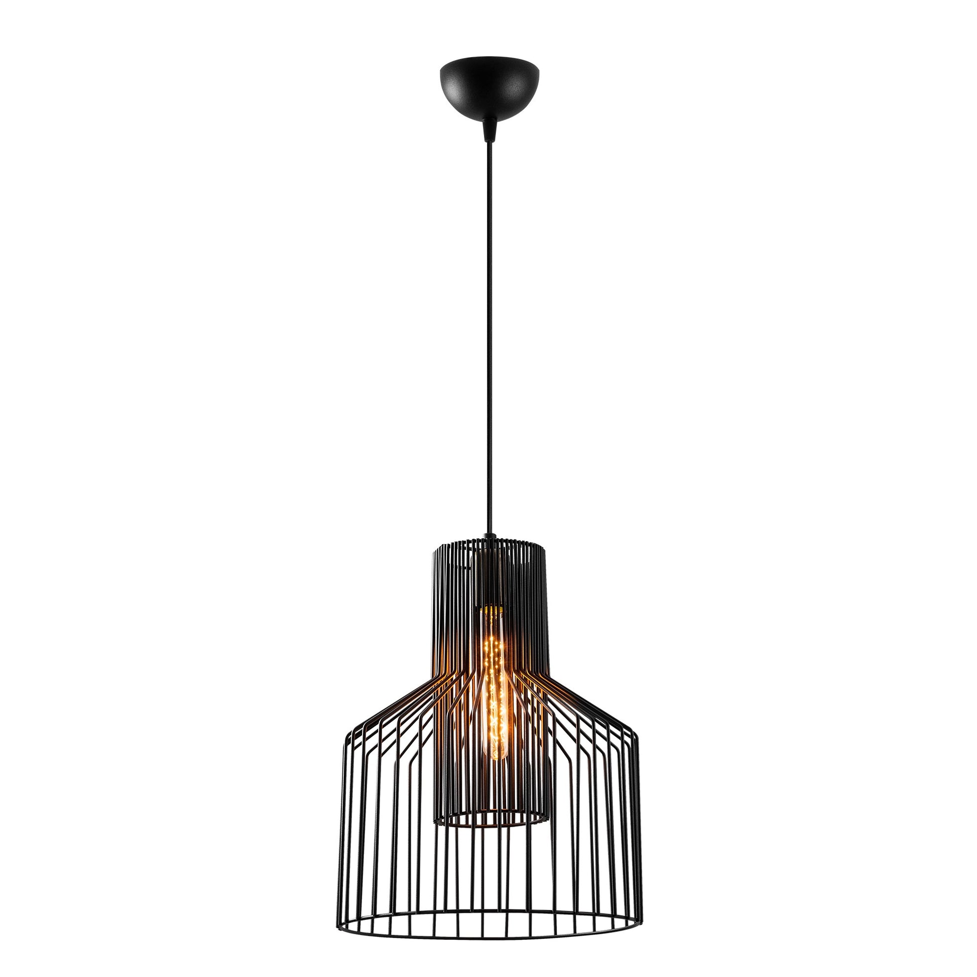 Candeeiro de Teto Industrial Preto, Corpo de Metal, 30 x 30 cm, Altura 137 cm, Ajustável, Soquete E27, Design Elegante para Espaços Modernos, Classificação IP20