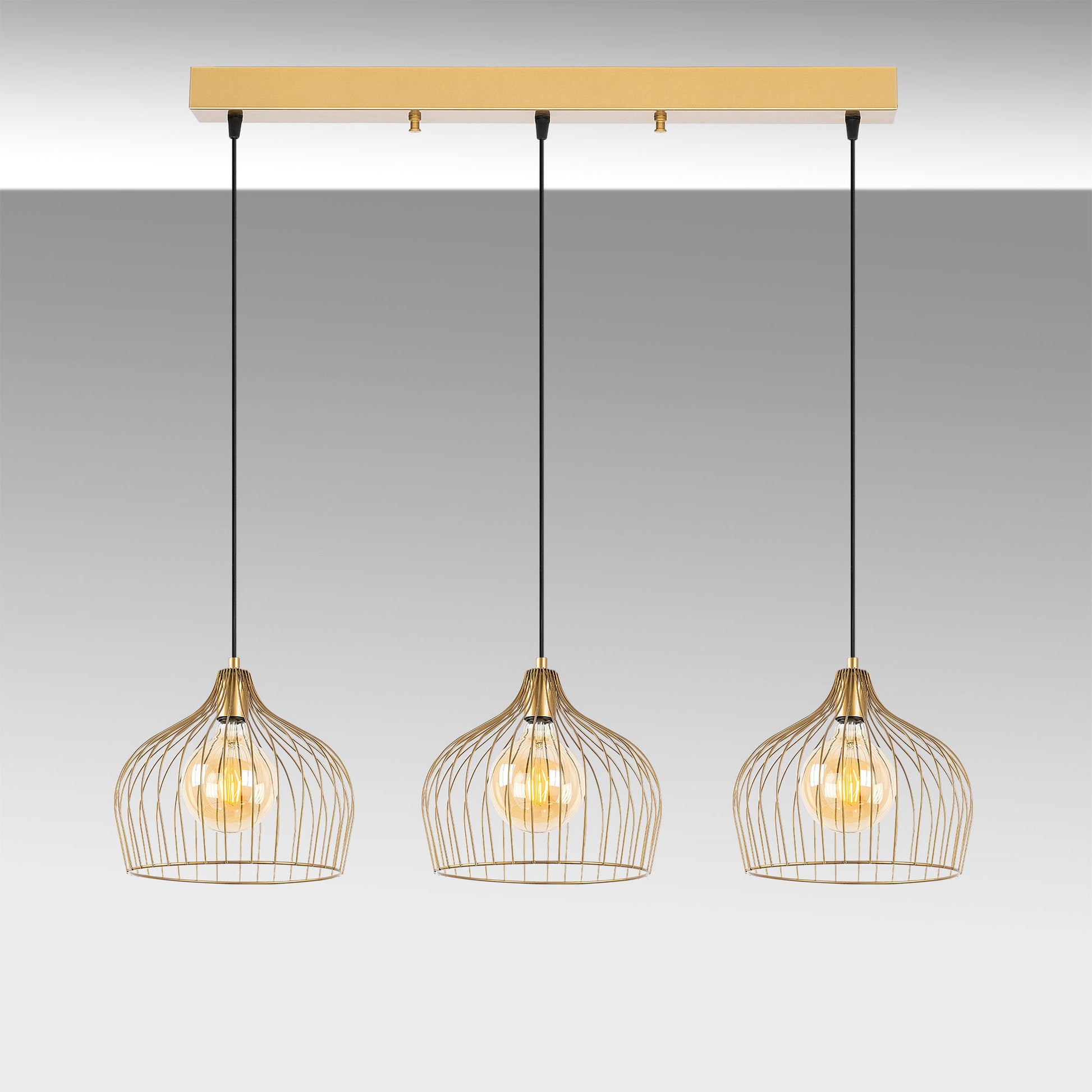 Os três soquetes E27 permitem até 40 watts de luz cada, proporcionando iluminação ampla para o seu espaço. A tampa de metal e a placa de base adicionam um toque de elegância, enquanto a cor dourada sólida traz um toque de glamour à sua decoração.