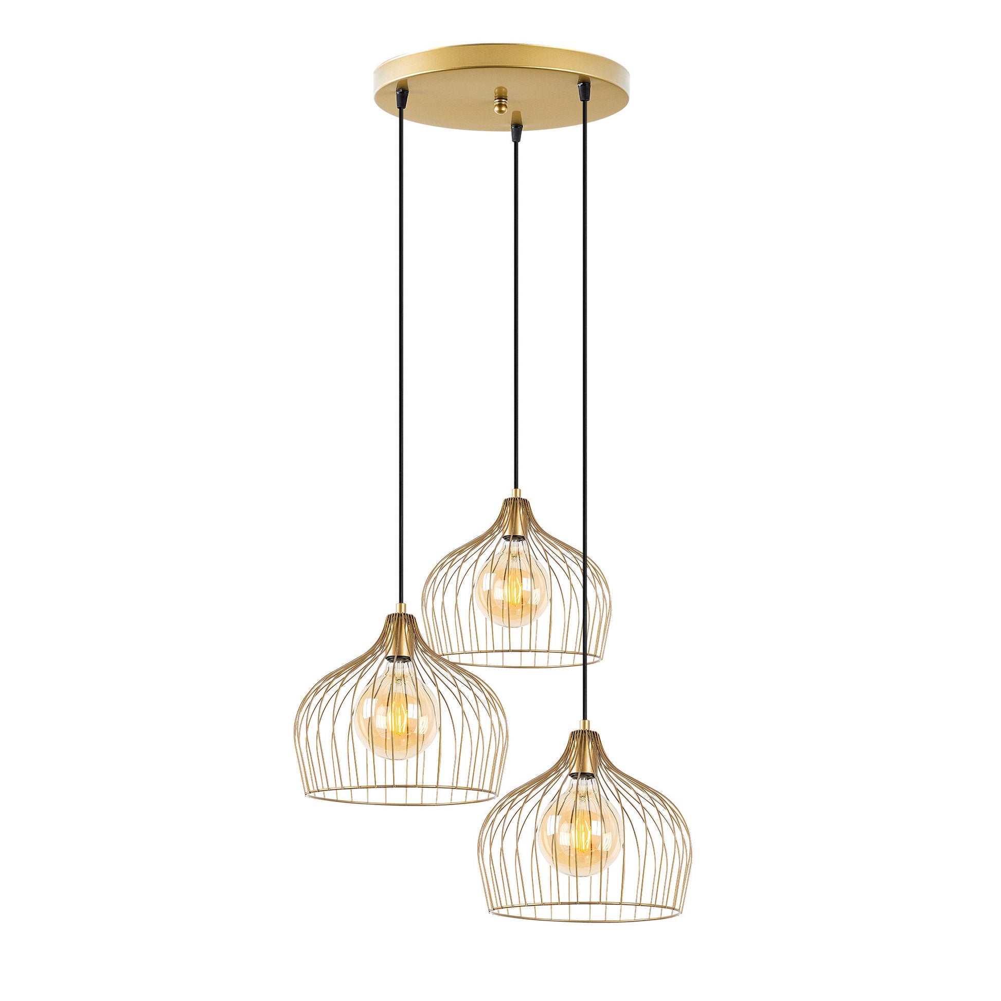 Candeeiro de Teto Dourado Elegante, 56 x 56 x 121 cm | Corpo em Metal, Altura Ajustável, 3 x E27 máx. 40 W | Design Glamour Moderno para Interiores Elegantes