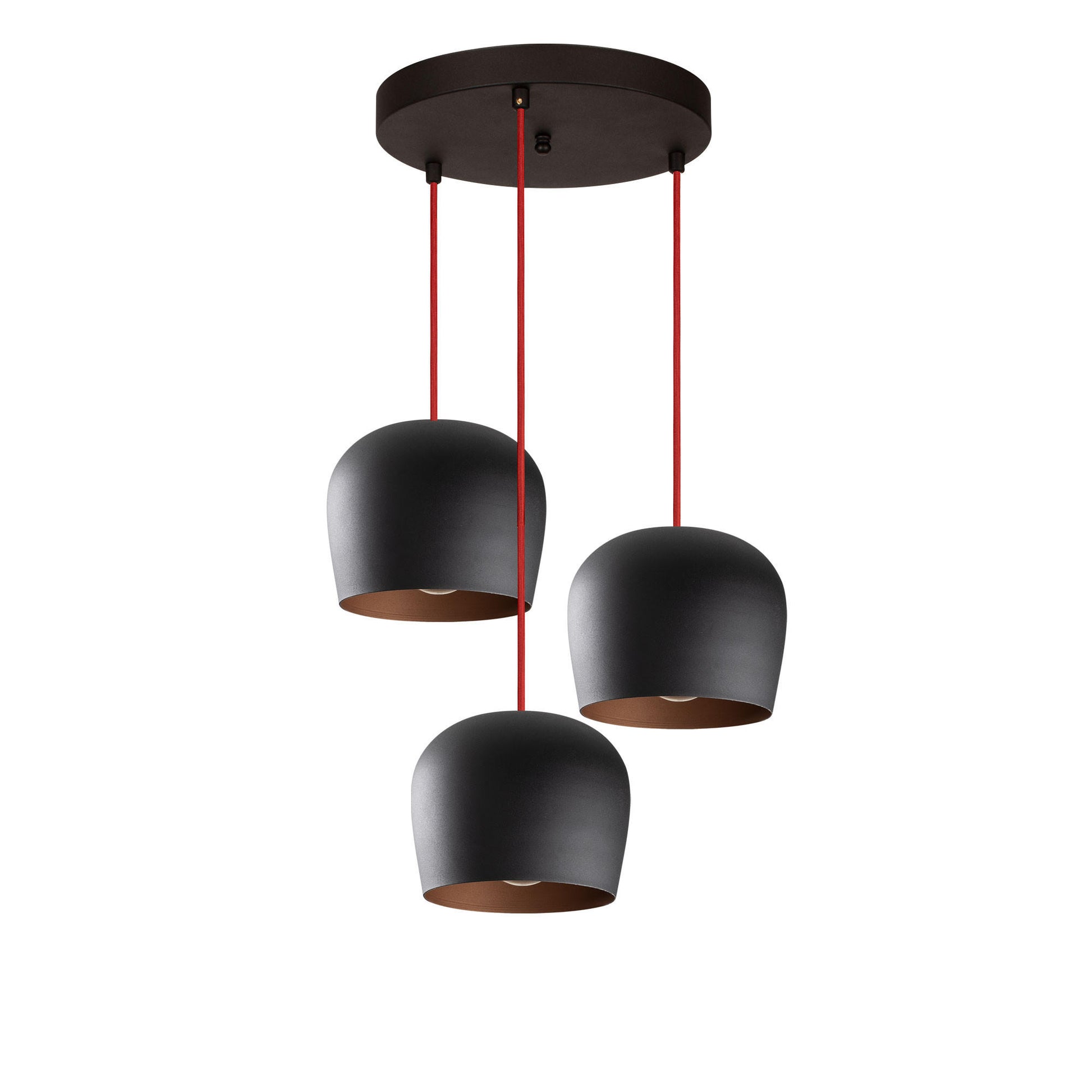 Candeeiro de Teto Industrial Moderno, Preto e Vermelho, 48 cm de Diâmetro, 111 cm de Altura | Corpo em Metal, 3 Soquetes E27, Iluminação Elegante para Casa e Escritório