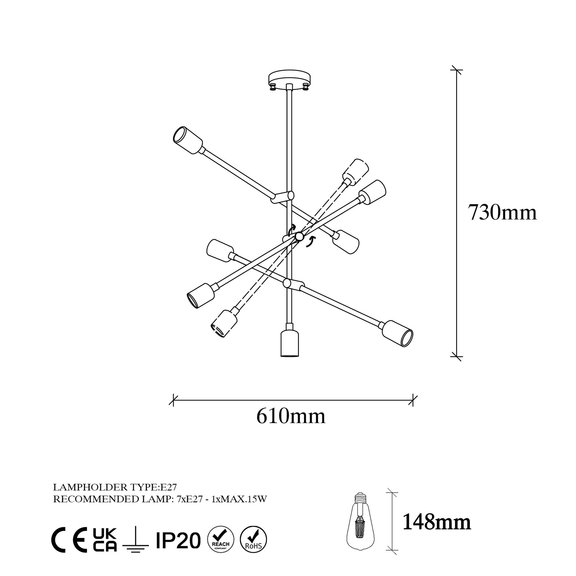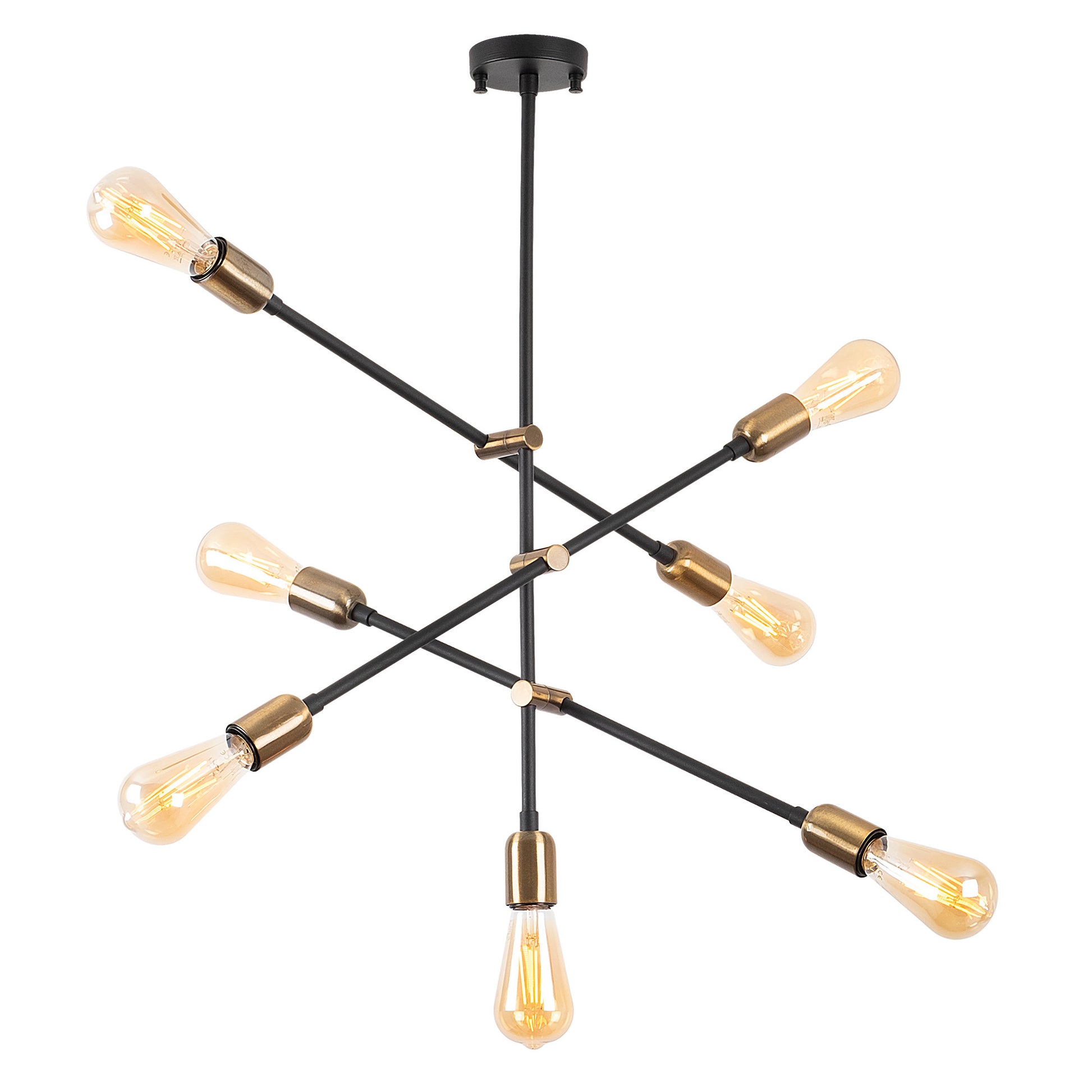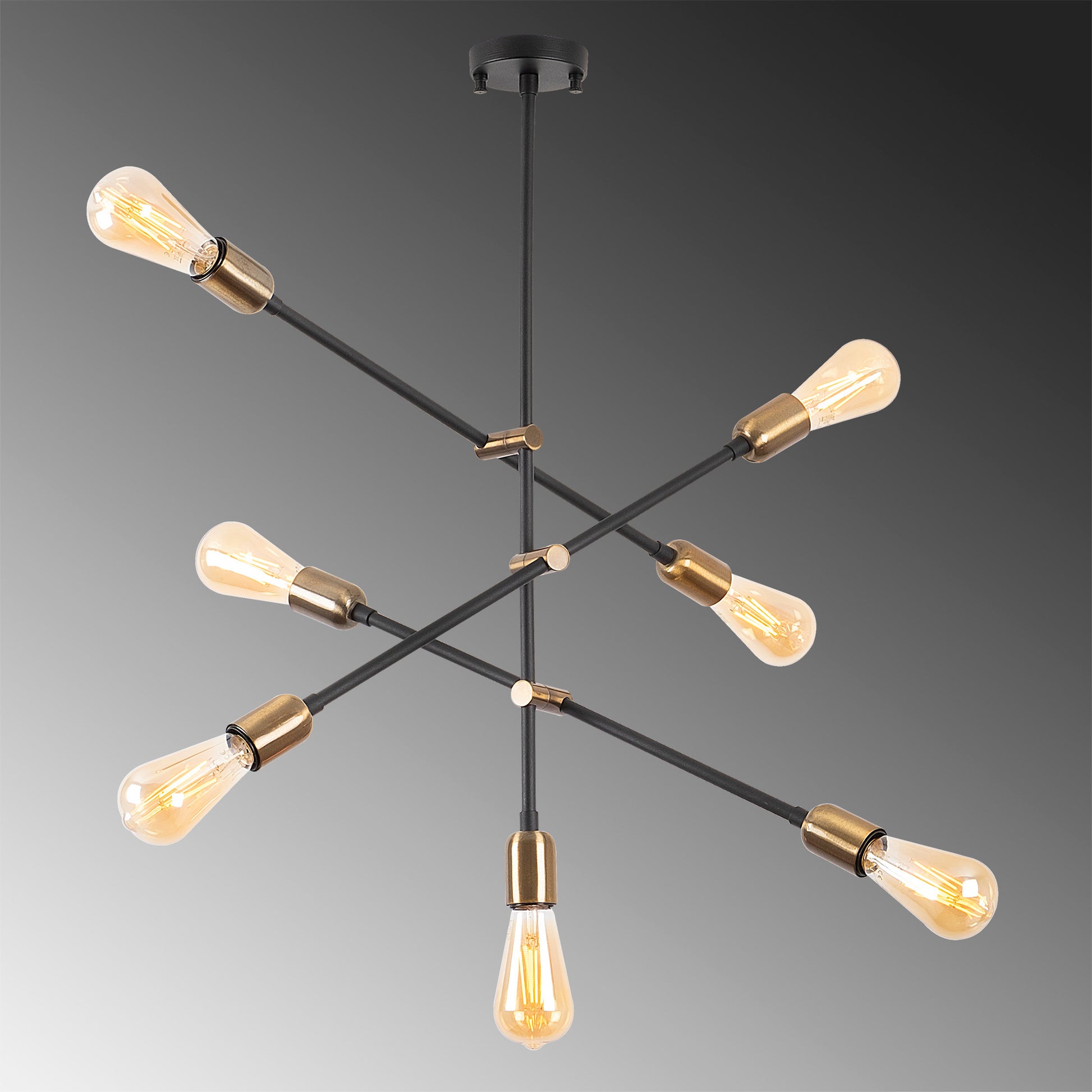 Candeeiro de Teto Elegante de Metal, Acabamento Preto e Antigo, 61 x 12 cm | 7 Soquetes E27, Máx. 15 W | Design Escandinavo Moderno, Perfeito para Decoração de Casa