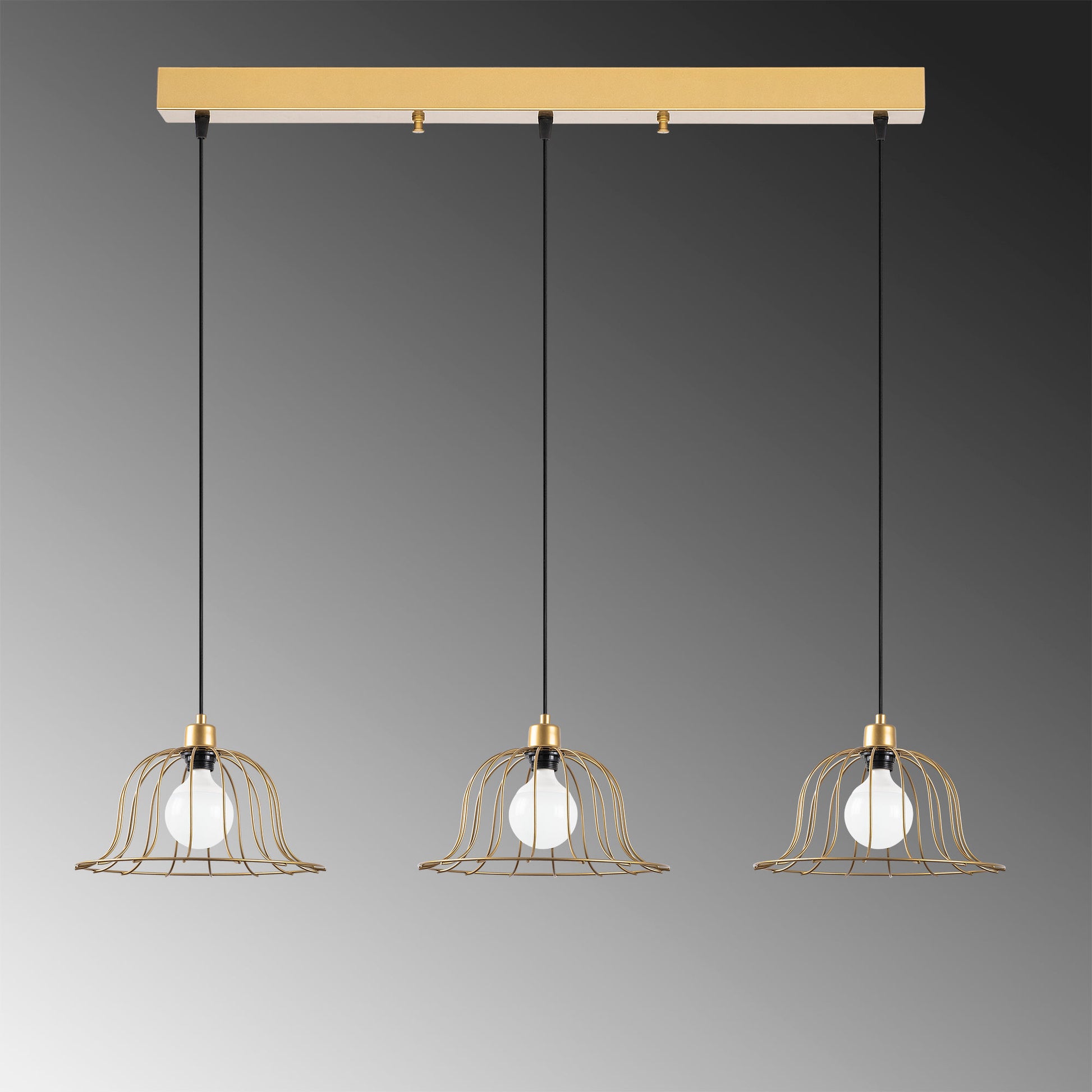 Candeeiro de Teto elegante em ouro brilhante, corpo de metal, altura ajustável, 144 x 35 x 121 cm | 3 x E27 máx. 40 W | Design moderno e glamouroso para casa e escritório