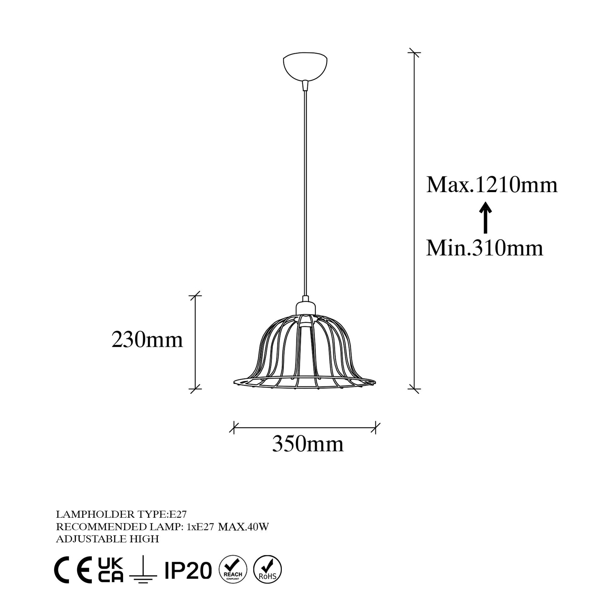 - Tipo de tomada: E27 Max 40 W para compatibilidade com várias lâmpadas
