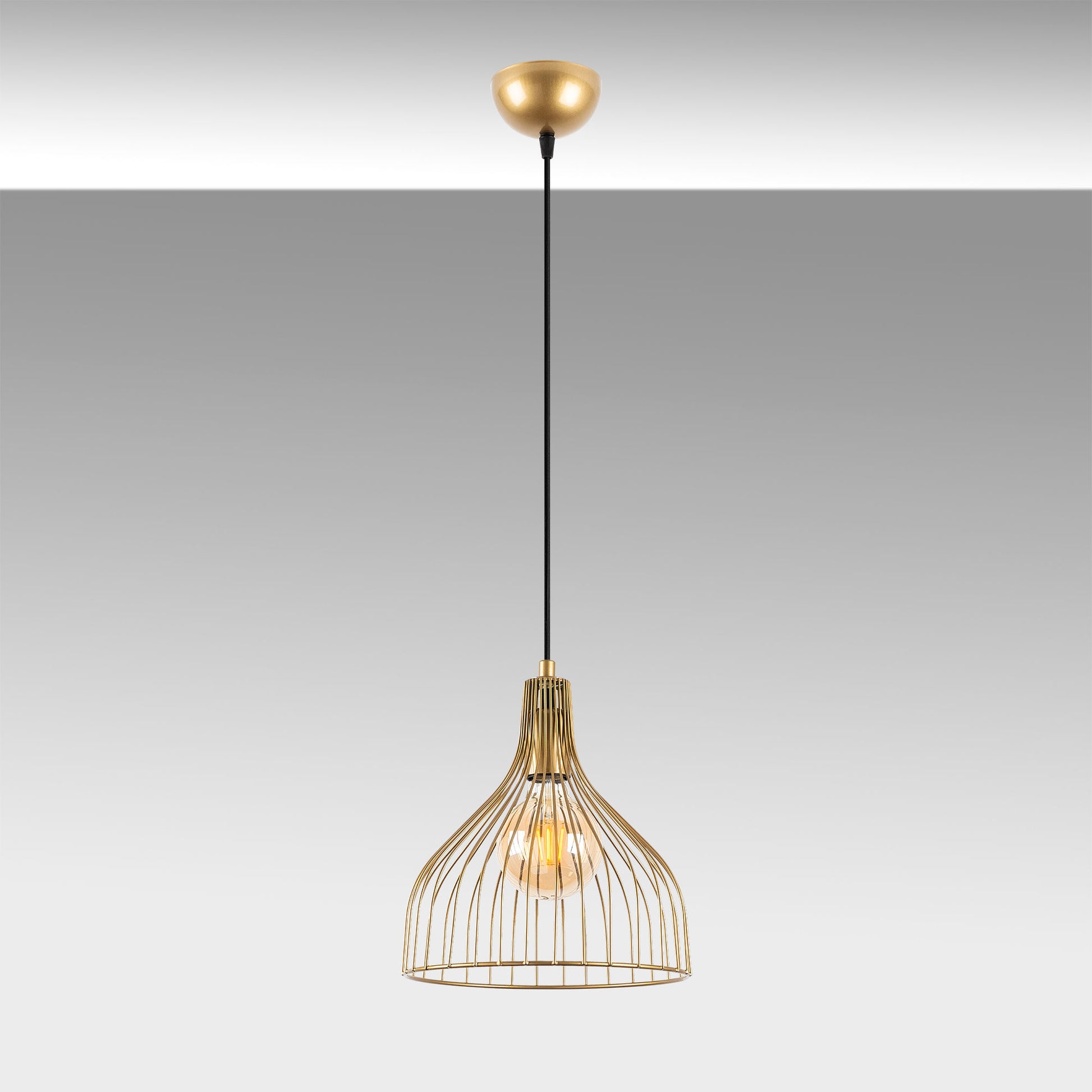 Candeeiro de Teto Dourado Elegante, Corpo em Metal, 25 x 25 x 123 cm, Altura Ajustável, Soquete E27, Design Moderno e Glamouroso | Perfeito para Salas de Estar e Jantar