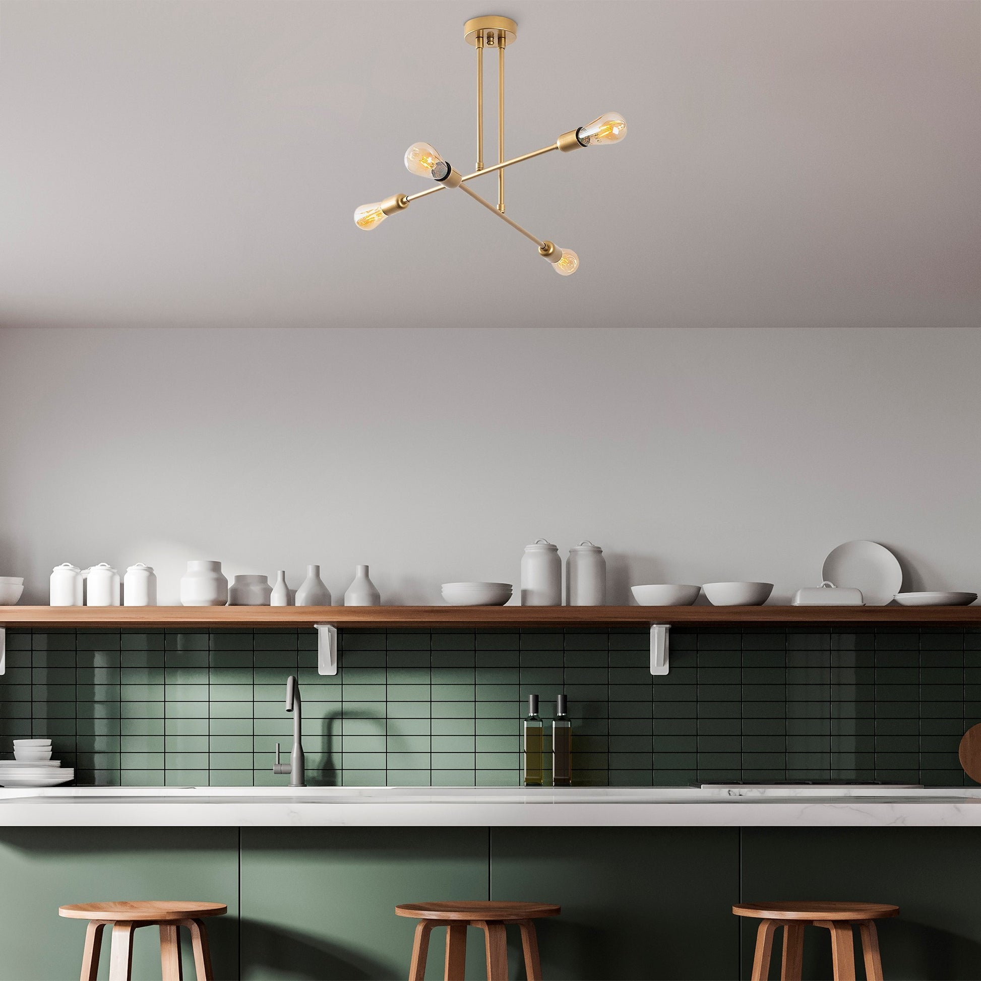 Candeeiro de Teto Dourado Elegante, 70 cm de Diâmetro, Altura Ajustável, Corpo em Metal, 4 x E27 máx. 40 W | Design Glamouroso para Espaços Modernos | Classificação IP20