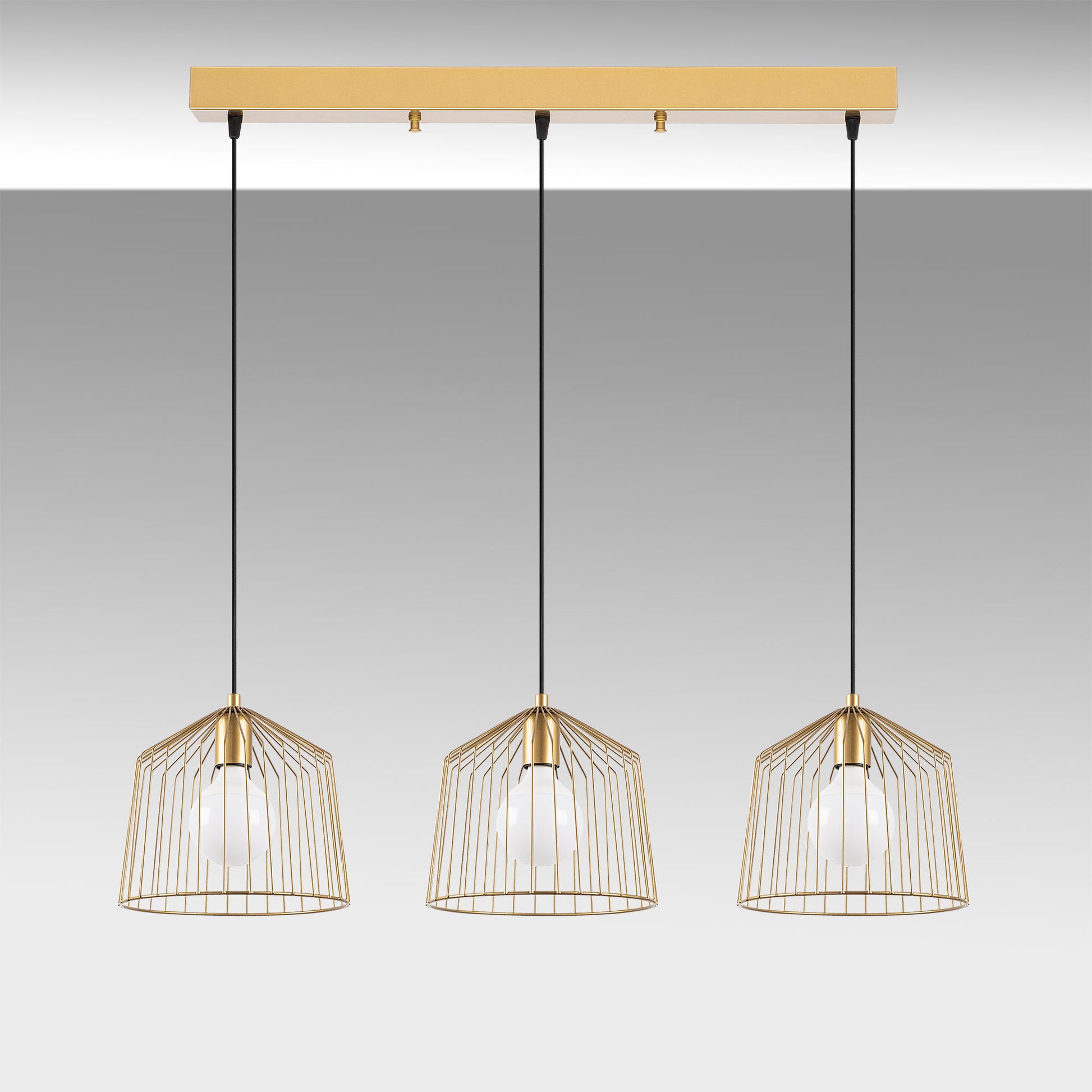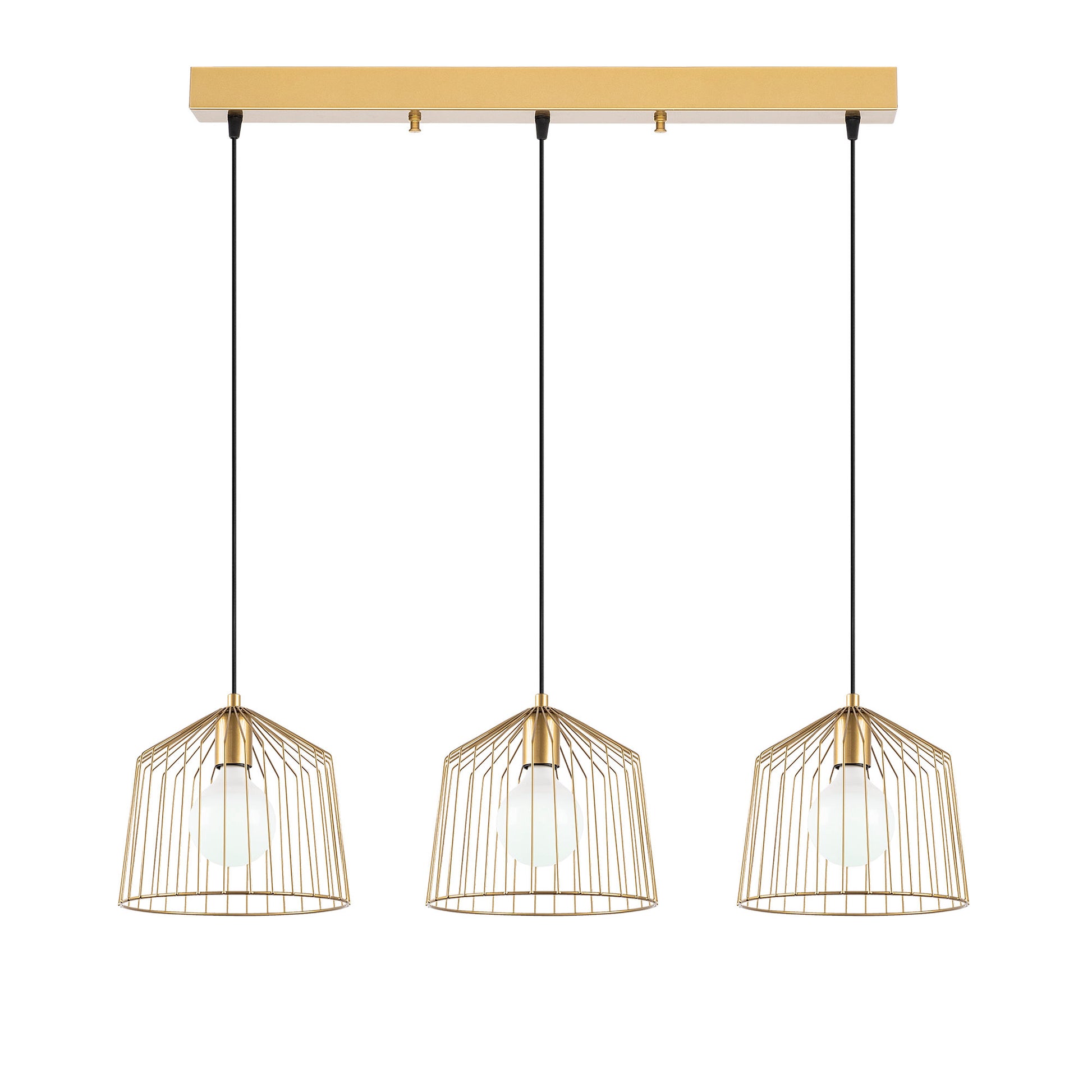 Candeeiro de Teto Dourado Elegante, Corpo em Metal, 96 x 26 x 121 cm | Altura Ajustável, 3 Soquetes E27, Design Moderno e Glamouroso | Perfeito para Salas de Estar e Salas de Jantar