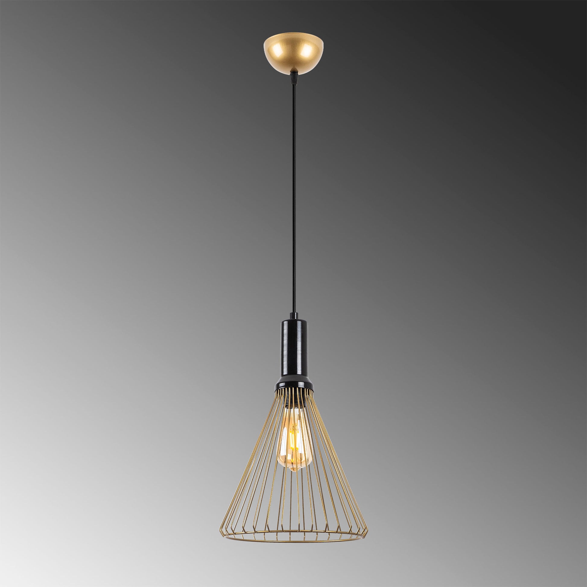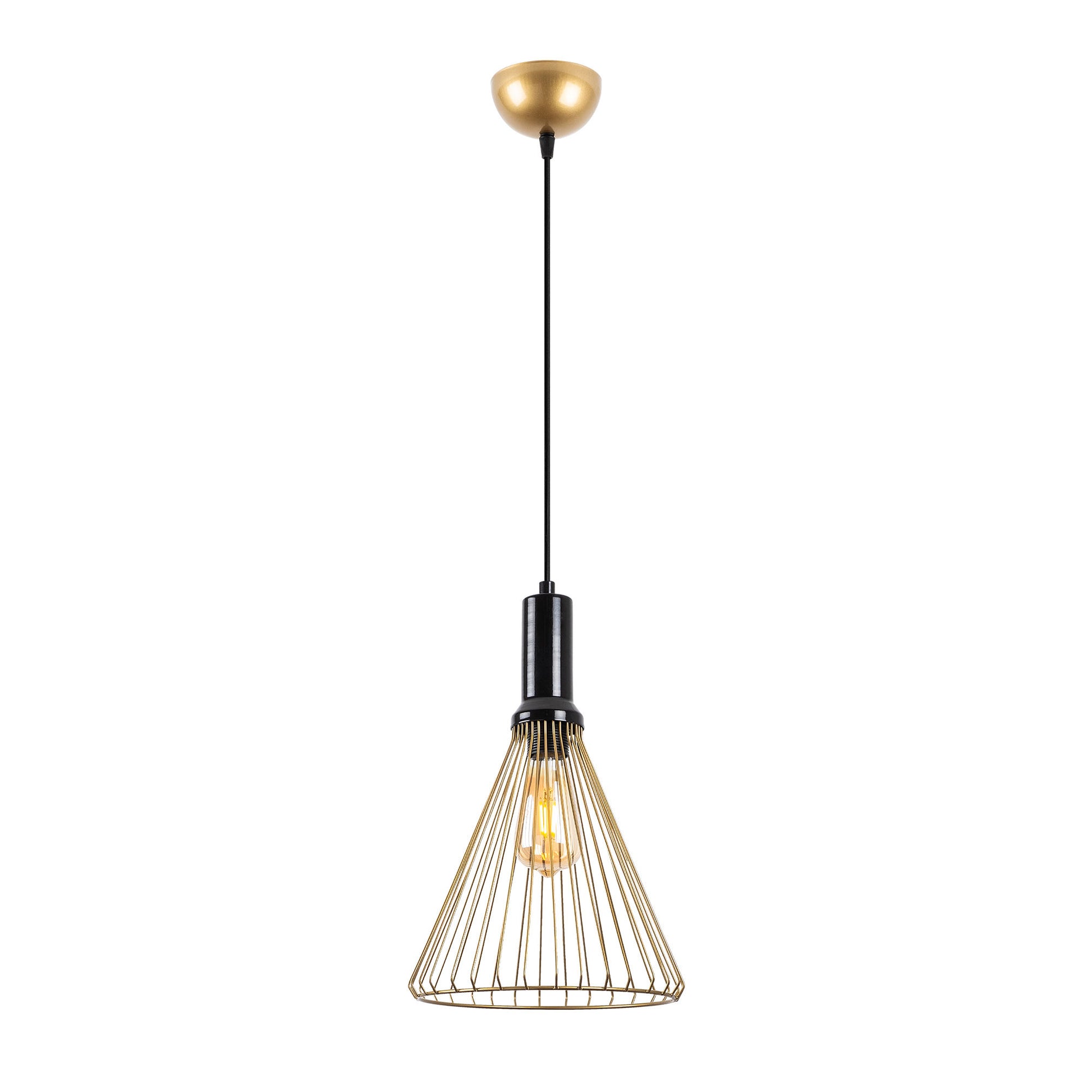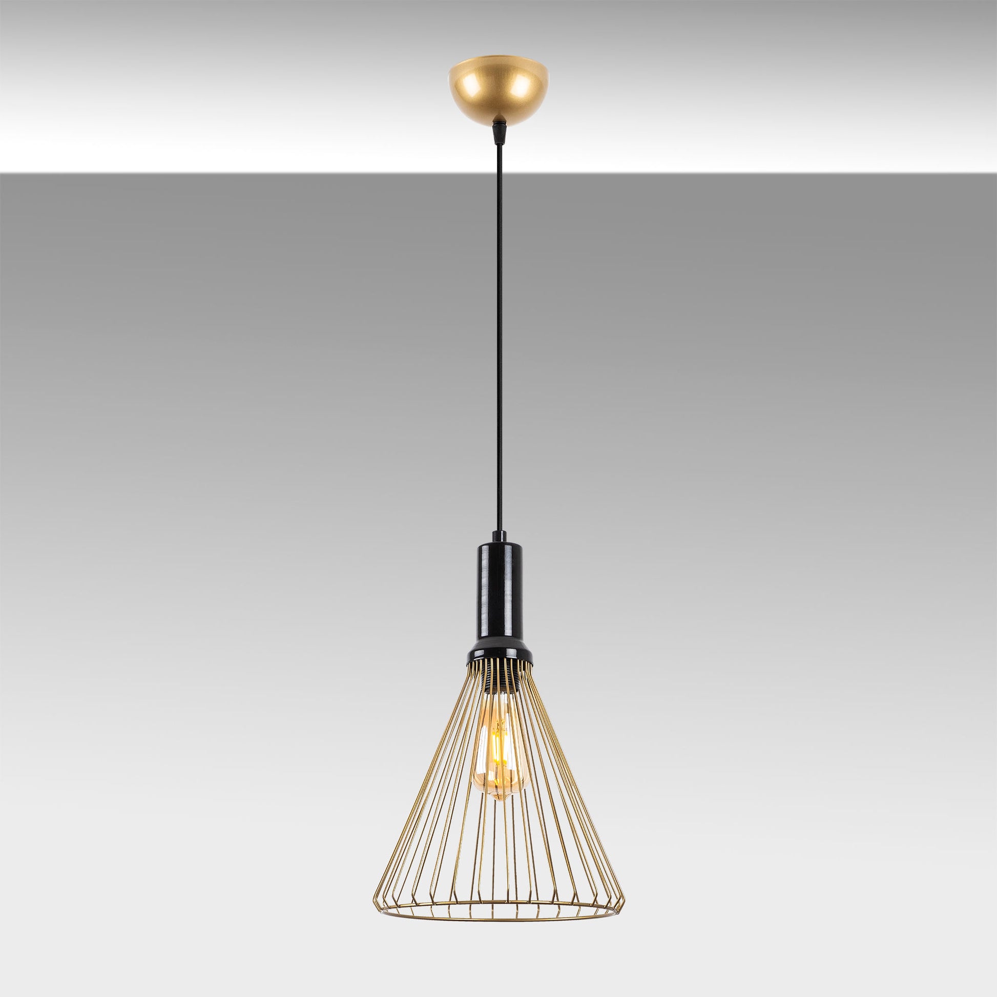 A cor dourada brilhante deste candeeiro dá um toque de opulência e glamour a qualquer divisão. O seu design simples, mas cativante, complementa sem esforço qualquer estilo de interior, tornando-o uma escolha versátil para ambientes modernos, contemporâneos ou tradicionais.