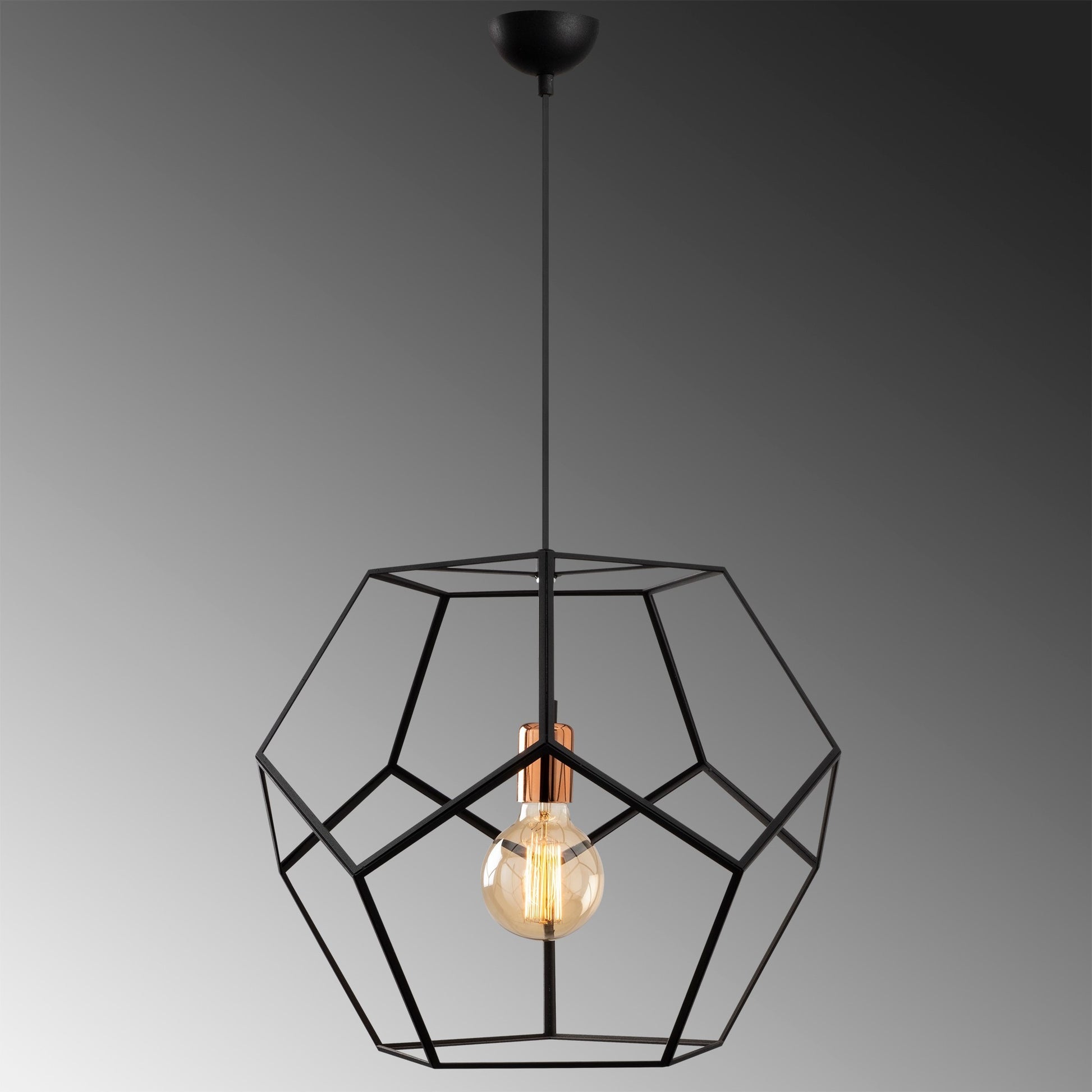 Candeeiro de Teto Industrial Moderno, Preto e Bronze, 56 cm de Diâmetro, 146 cm de Altura | Ajustável, Soquete E27, Iluminação Elegante para Casa e Escritório