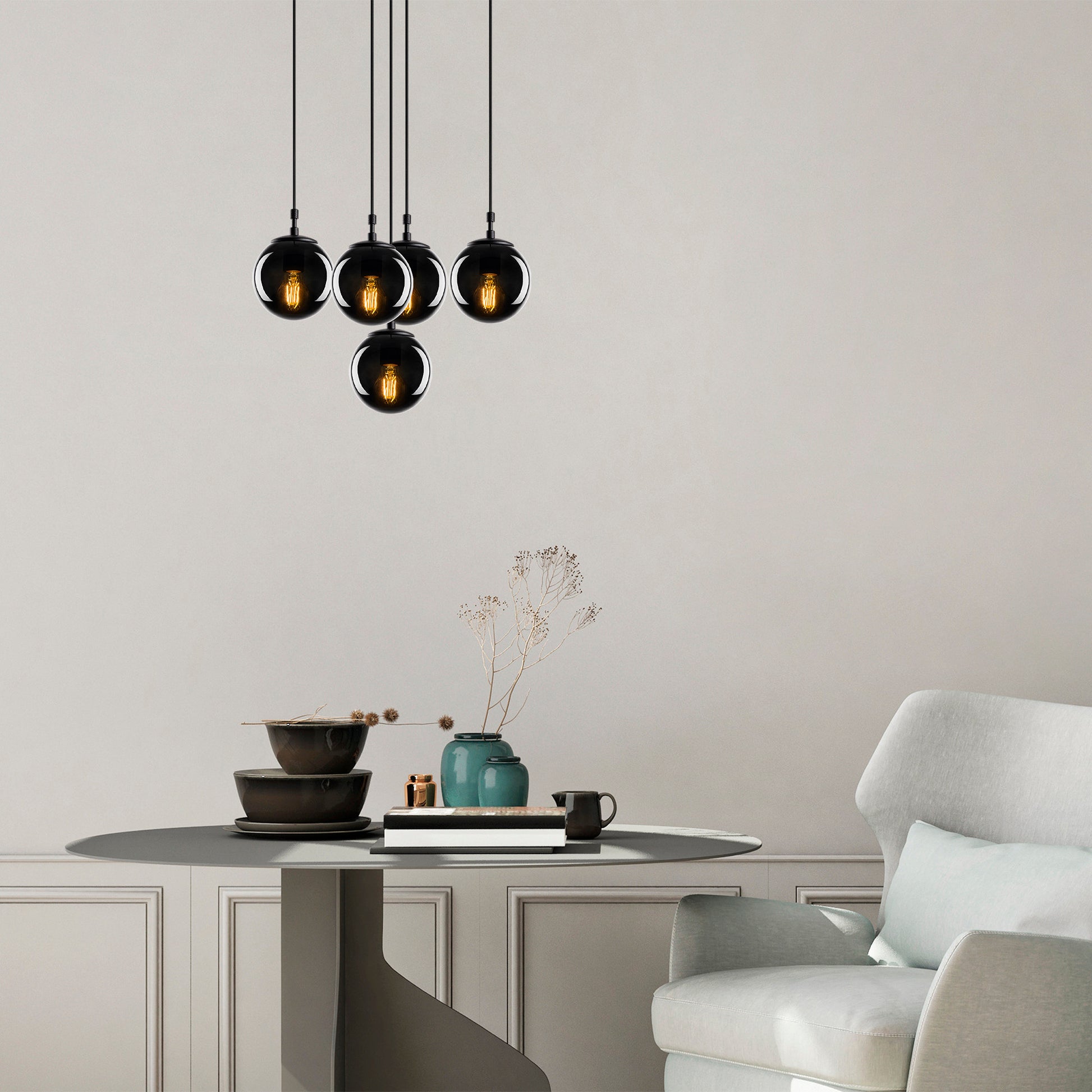 A combinação de cores preto e fumado do candeeiro acrescenta um toque de drama e sofisticação à sua decoração. Complementa sem esforço qualquer esquema de cores, tornando-o uma adição versátil à sua casa ou escritório. Quer pretenda criar um ambiente acolhedor ou uma peça marcante, o nosso candeeiro permite-lhe dar largas à sua criatividade e transformar o seu espaço.