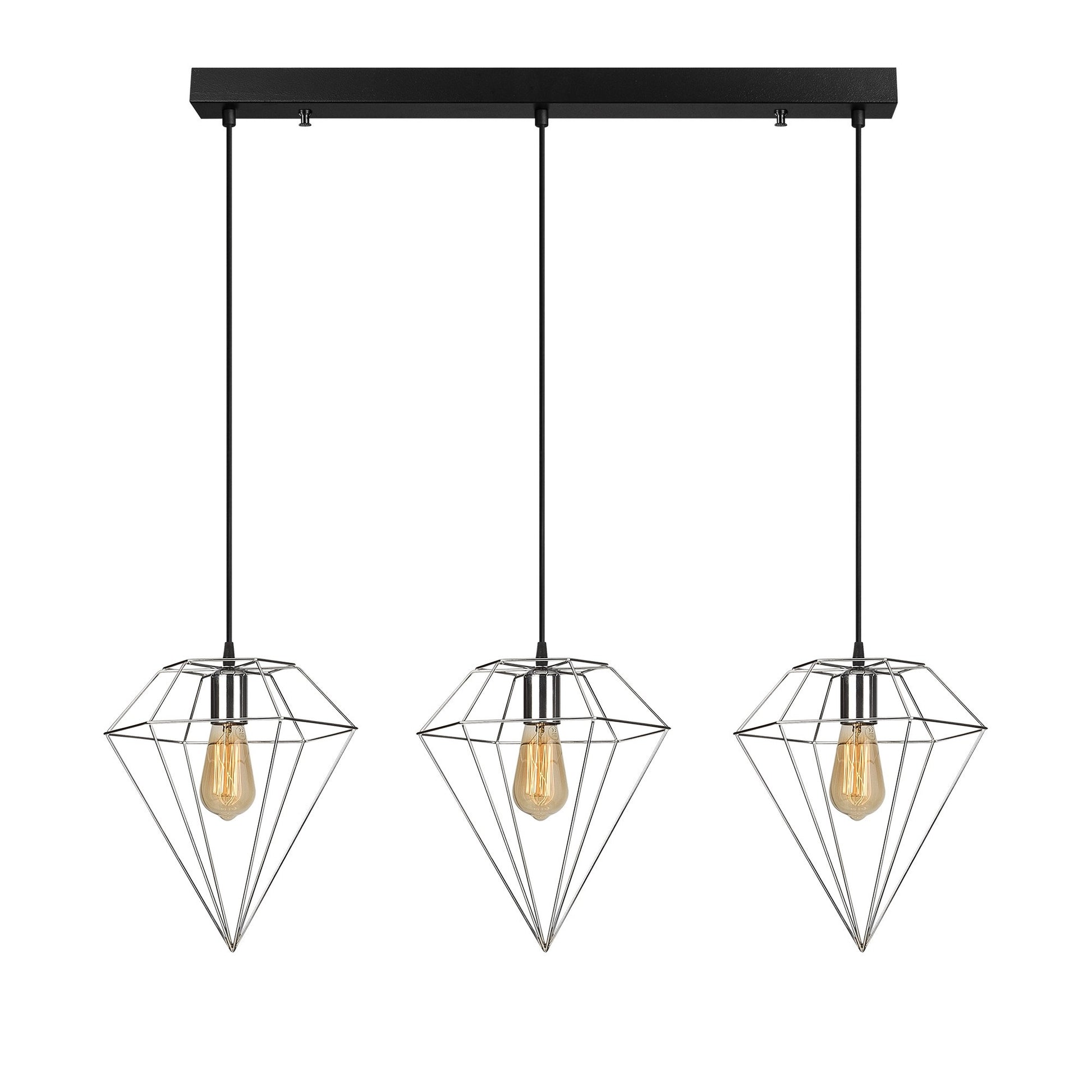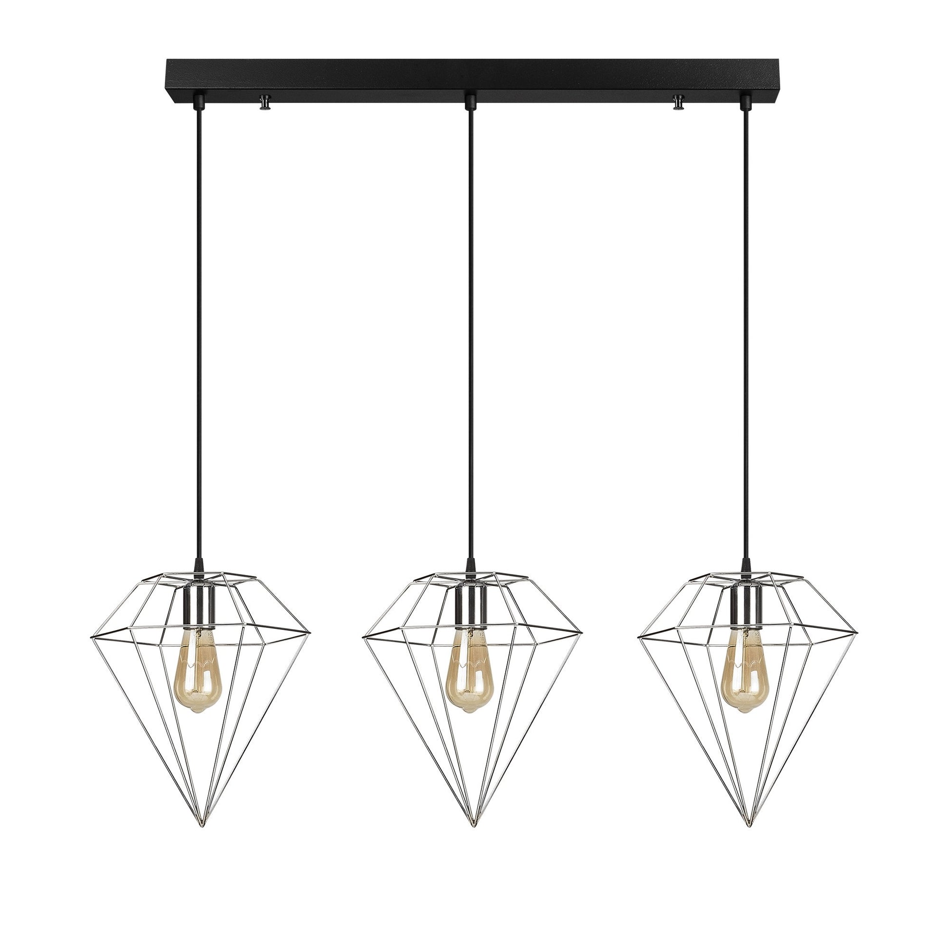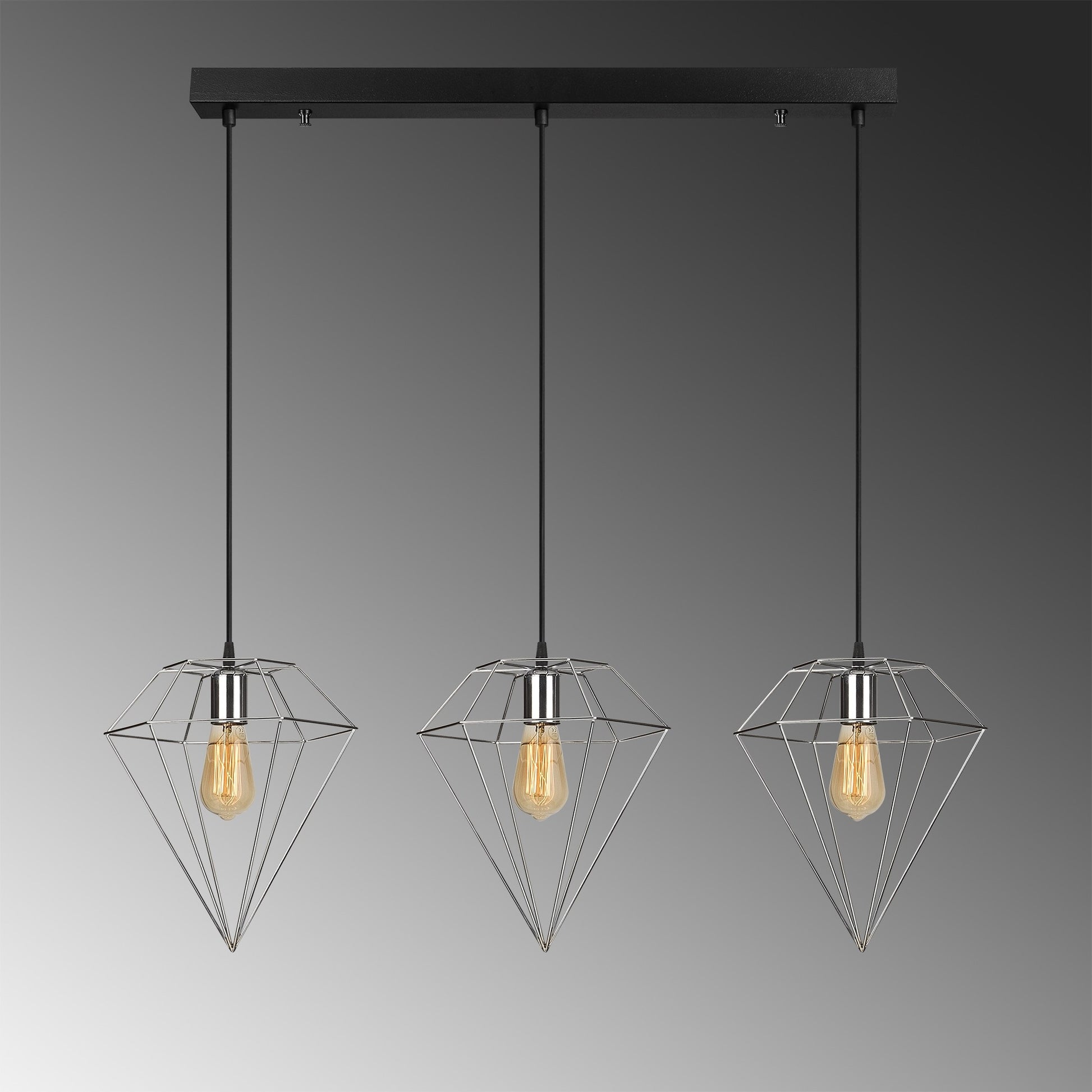 Candeeiro de Teto moderno cromado, 100 x 30 cm, altura ajustável de 134 cm | Corpo de metal, 3 soquetes E27, design industrial elegante para casa e escritório