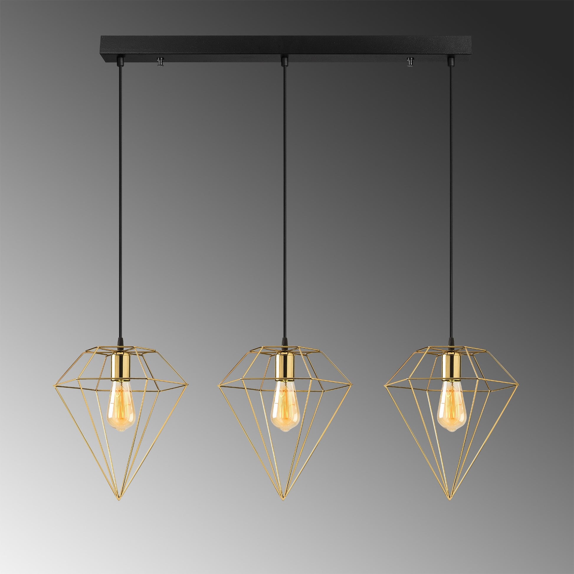 Candeeiro de Teto Dourado Elegante, Corpo em Ferro, 100 x 30 cm, Altura 134 cm, Ajustável, 3 x E27 Máx. 40 W, IP20 | Perfeito para Decoração e Iluminação Glamourosa