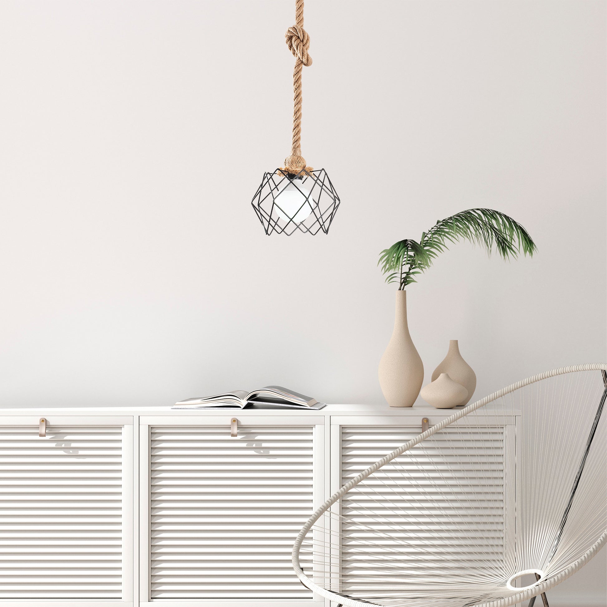 Candeeiro de Teto moderno preto com estrutura de corda, 23x23 cm, 80 cm de altura | Soquete E27, máx. 15 W | Iluminação elegante para casa e escritório, design elegante