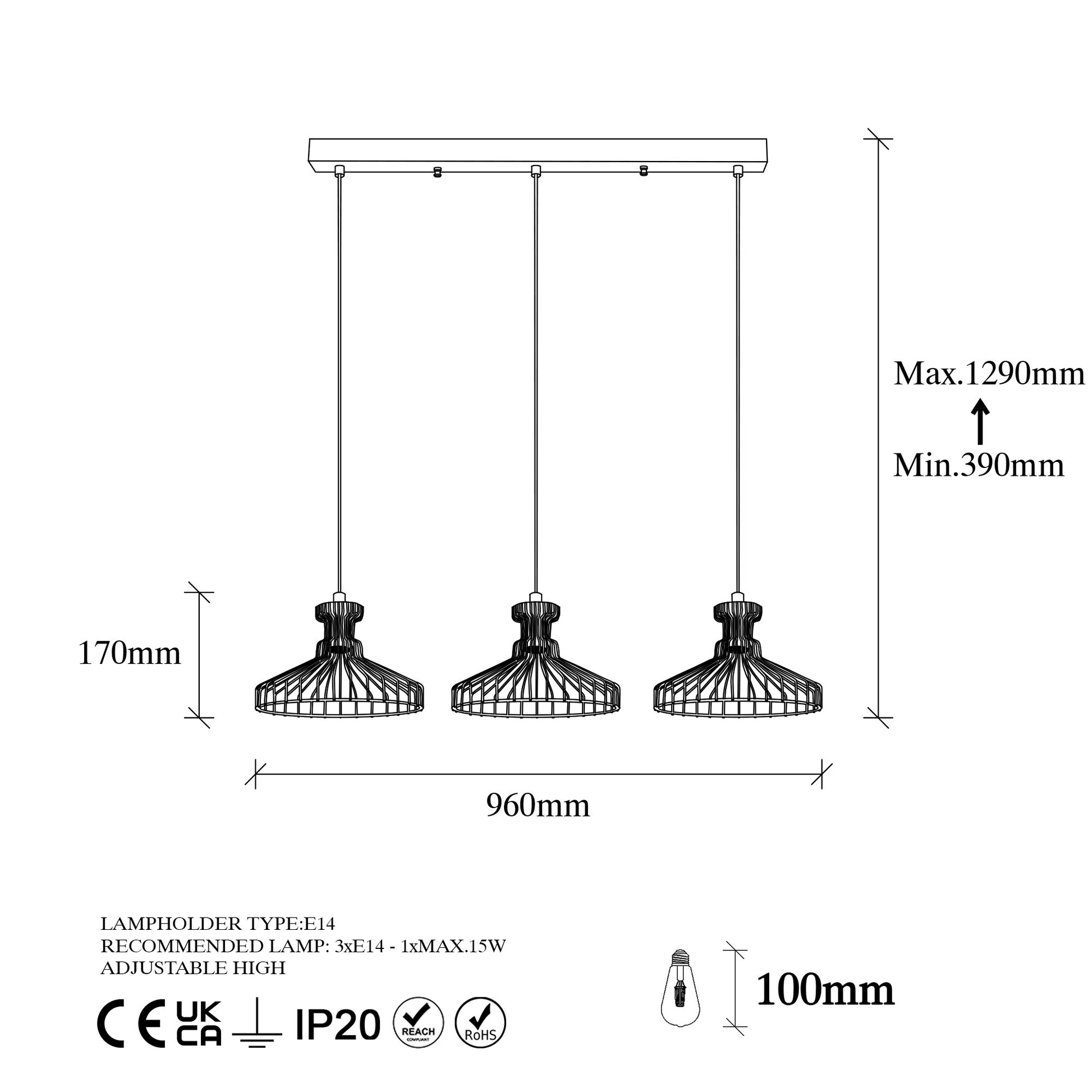 Com três casquilhos e14, este candeeiro permite-lhe criar o ambiente perfeito com um máximo de lâmpadas de 15 watts. Quer prefira um brilho quente e acolhedor ou uma luz brilhante e vibrante, este candeeiro tem tudo o que precisa.